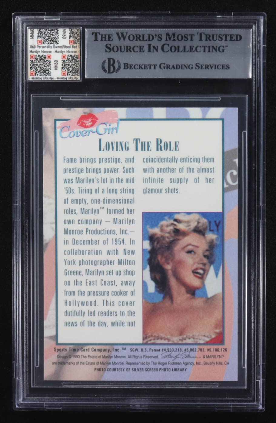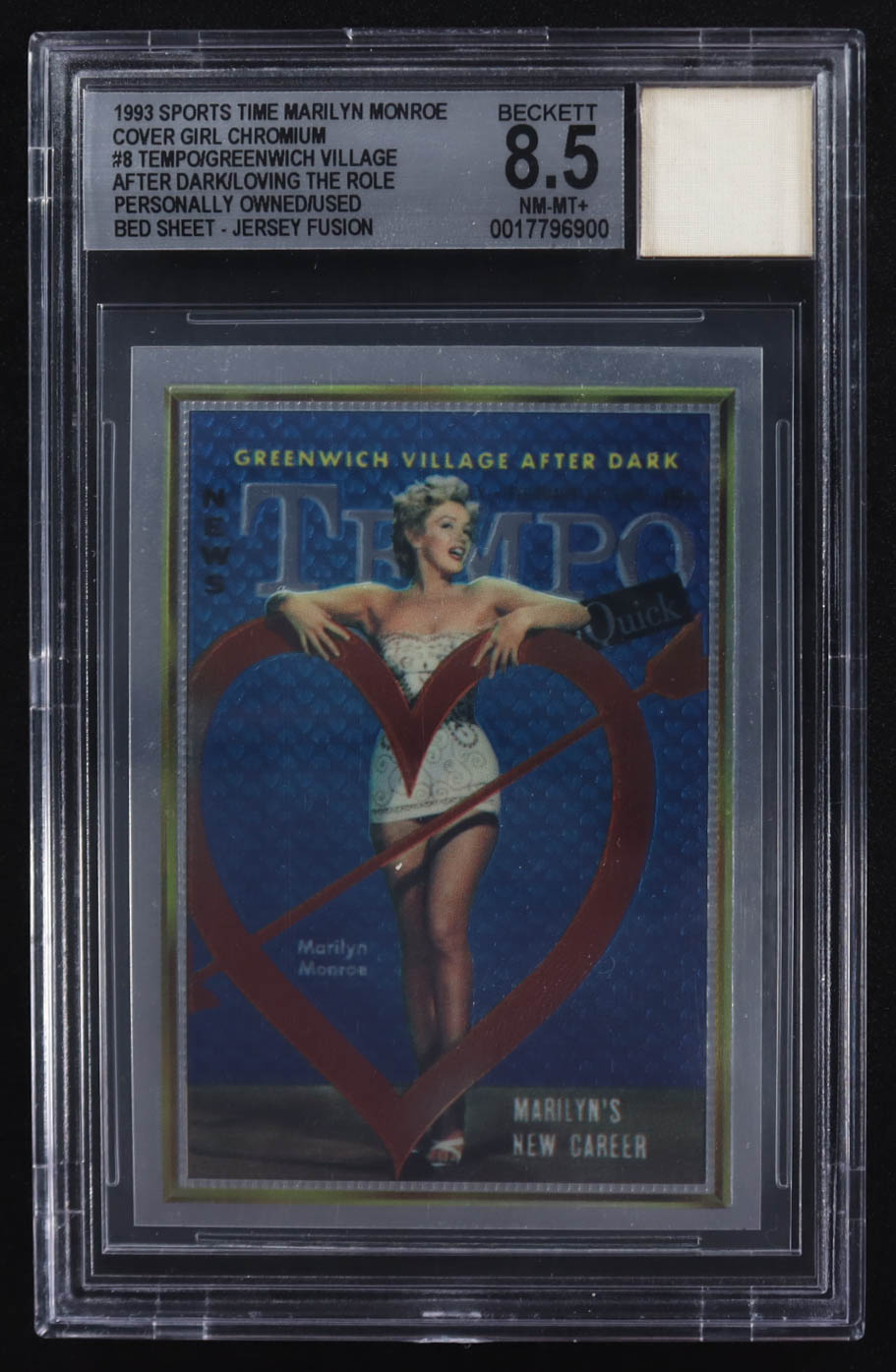 Marilyn Monroe 1993 Sports Time Cover Girl Chromium #8 Greenwich Village After Dark / Loving the Role with Personally Owned-Used Bed Sheet Patch (BGS 8.5)