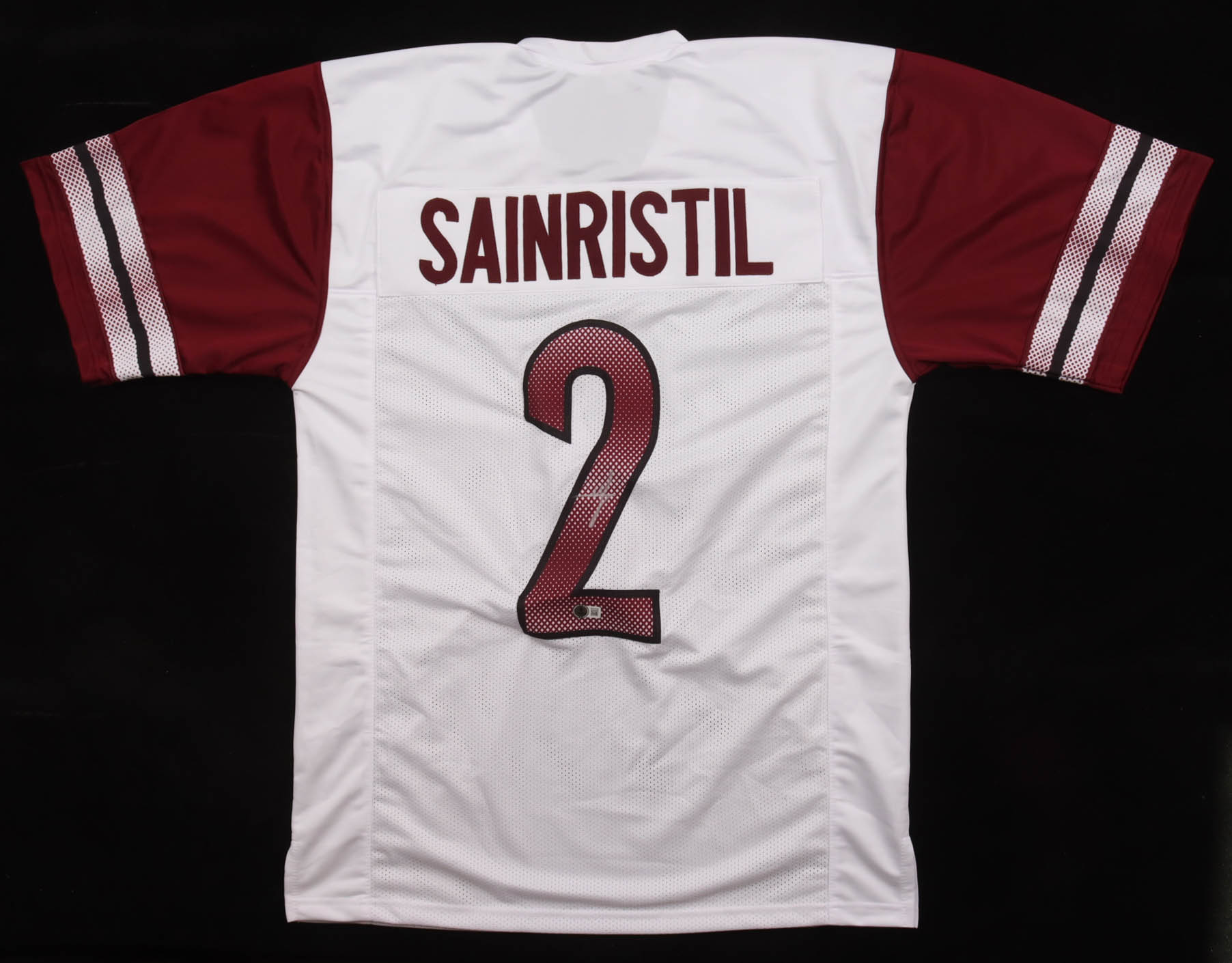 Custom jersey. Everything sewn on, size XL. Hand-signed by Mike Sainristil.