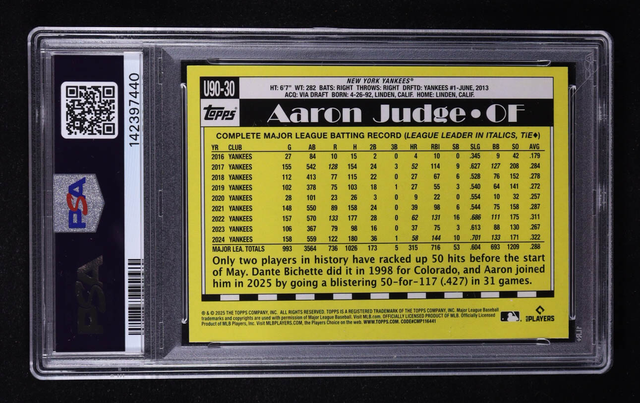 Aaron Judge 2025 Topps Update '90 Topps #U9030 (PSA 8)