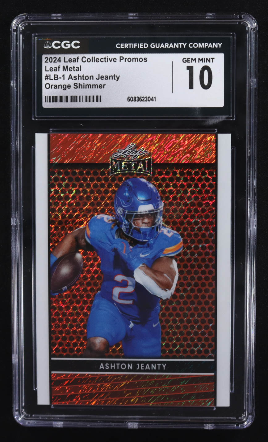 Ashton Jeanty 2024 Leaf Collective Promo Leaf Shimmer Orange #LB1 RC #184/299 (CGC 10)