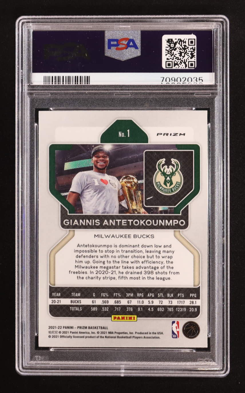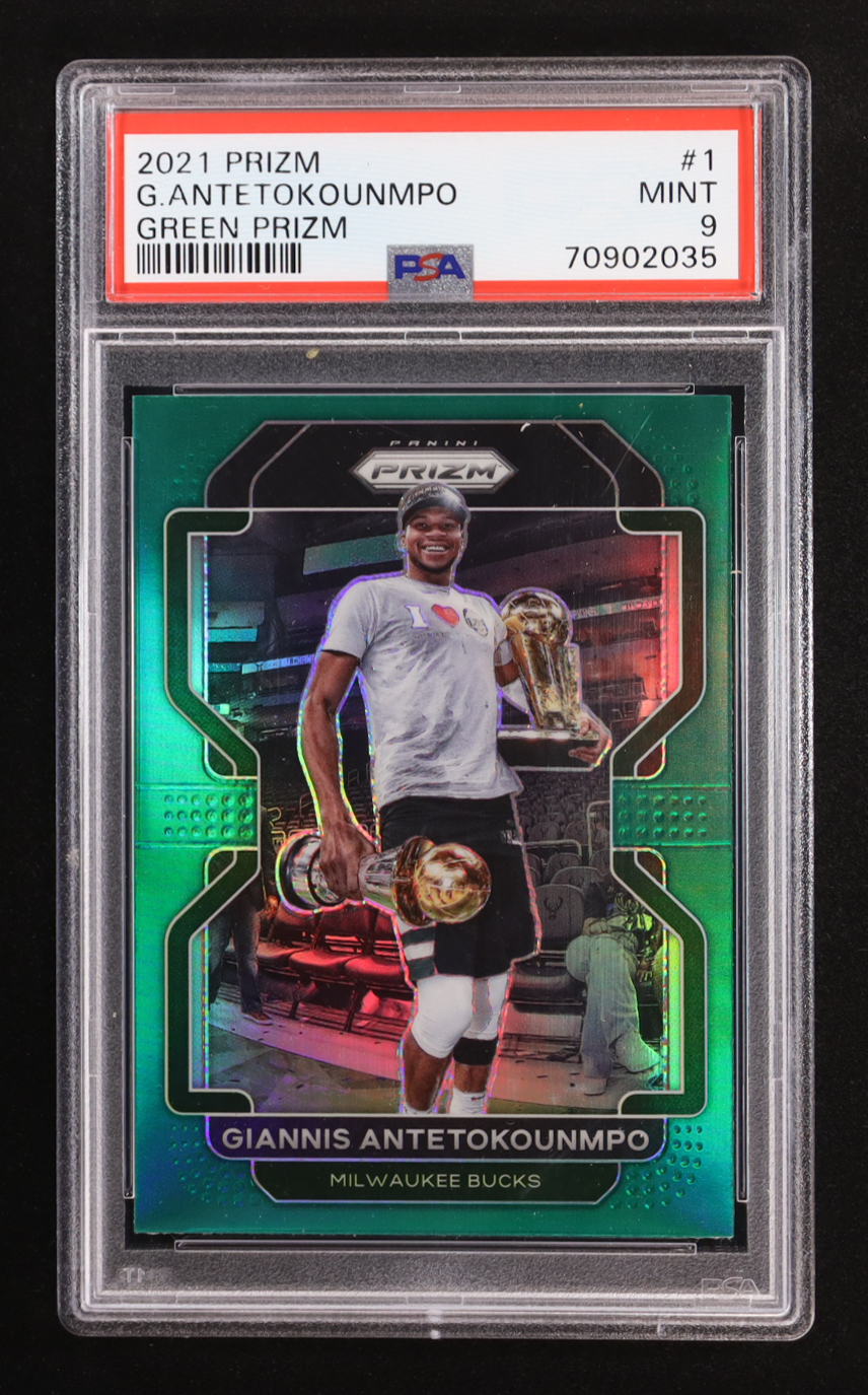 Giannis Antetokounmpo 2021-22 Panini Prizm Prizms Green #1 (PSA 9)
