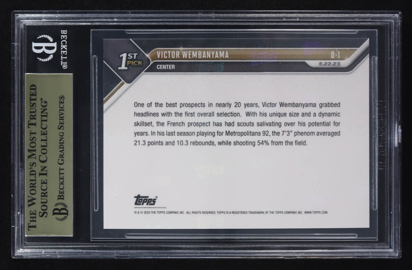 Victor Wembanyama 2023-24 Topps Now Draft #D1 RC (BGS 9.5)