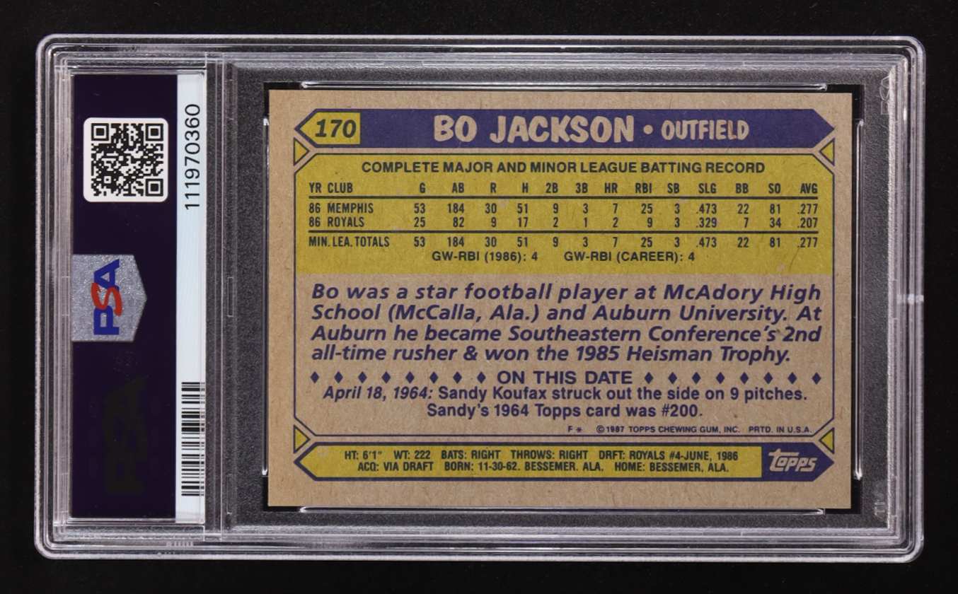 Bo Jackson 1987 Topps #170 RC (PSA 9)