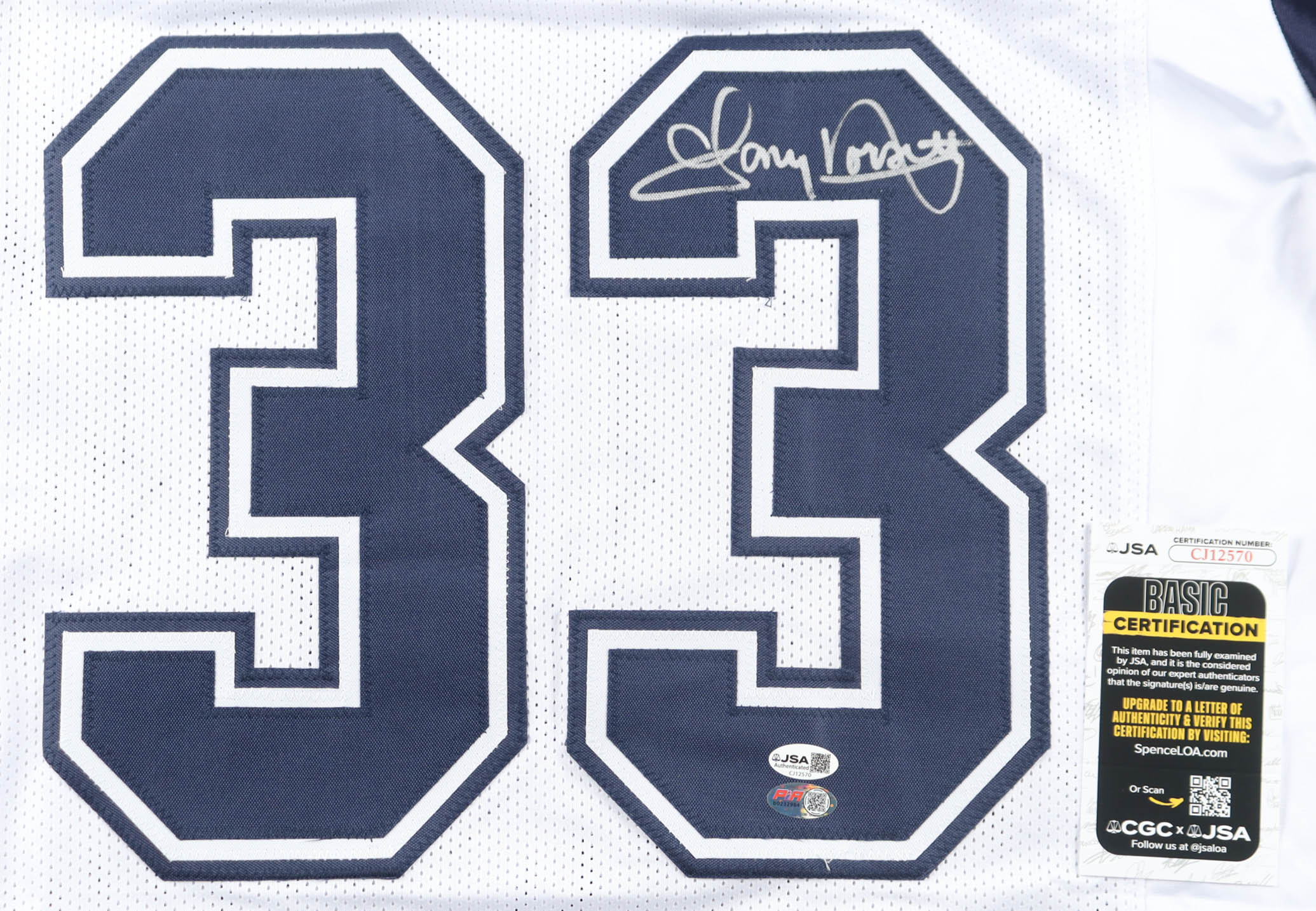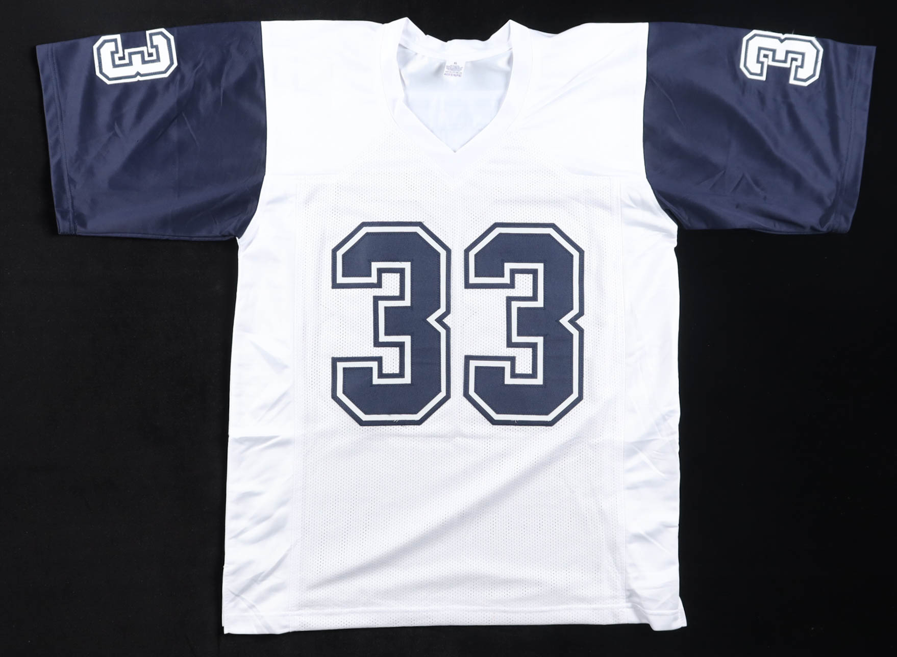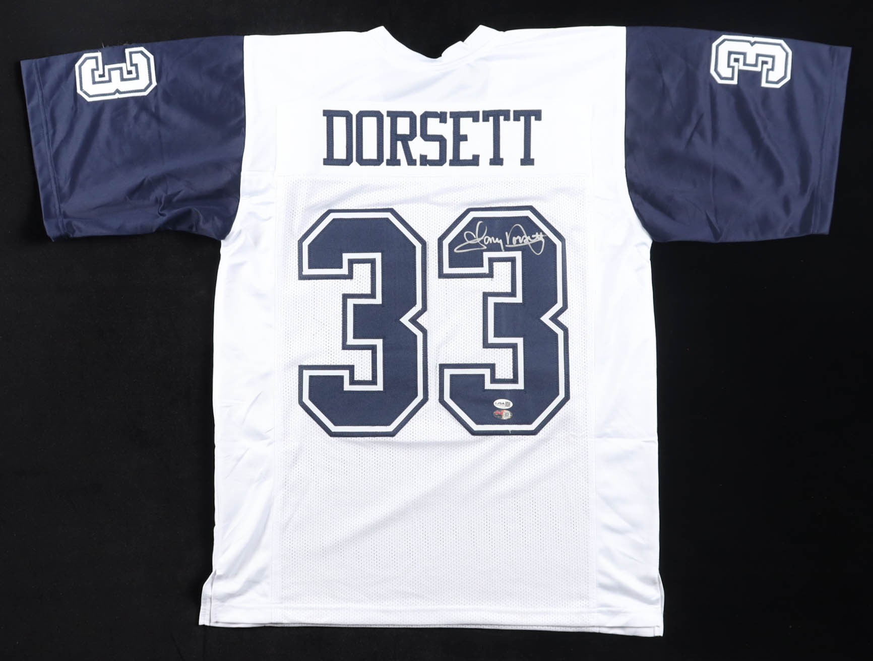 Custom jersey with everything sewn on, size XL. Hand-signed by Tony Dorsett (HOF).