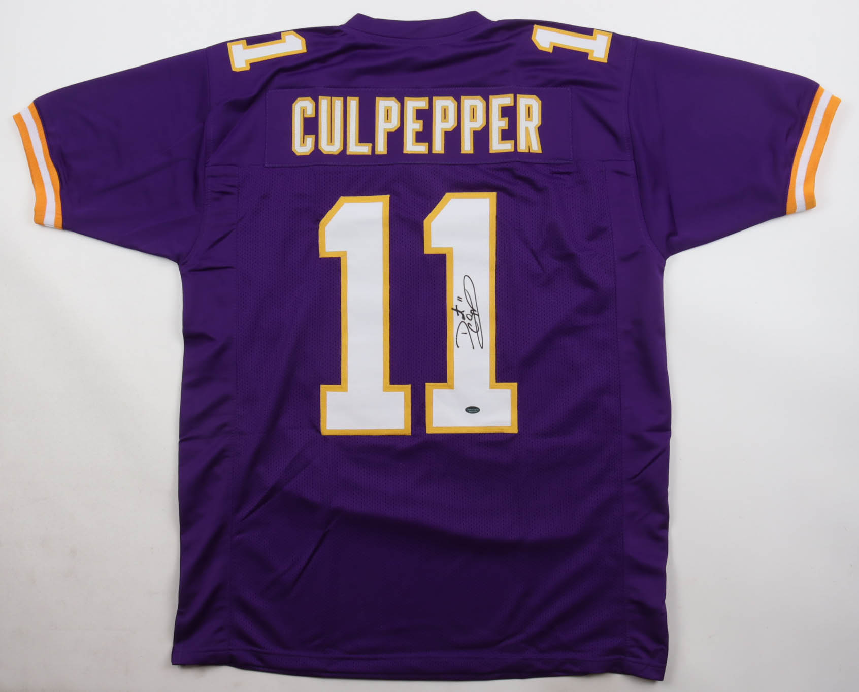 Custom jersey. Everything is sewn on, size XL. Has been hand-signed by Daunte Culpepper.
