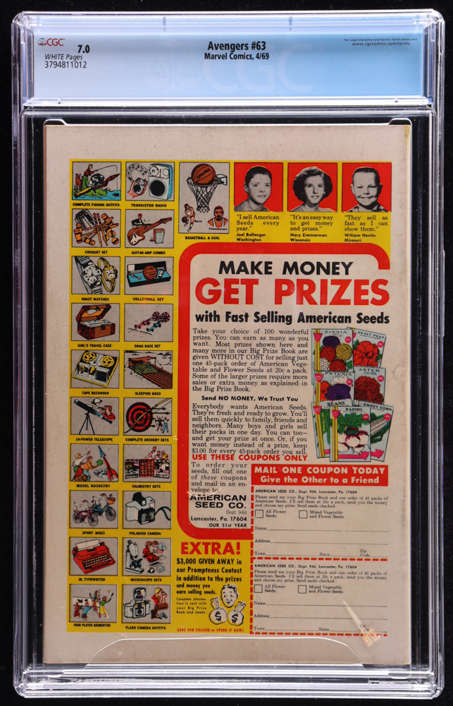 1969 "Avengers" Issue #63 Marvel Comic Book (CGC 7.0)