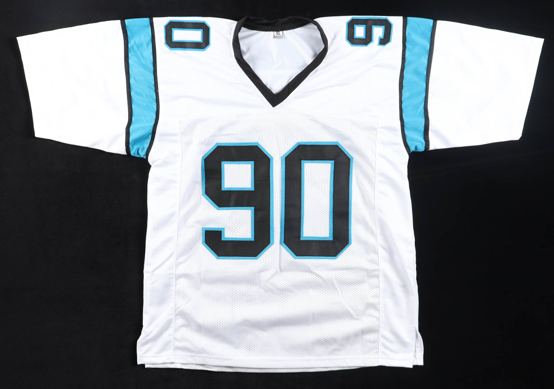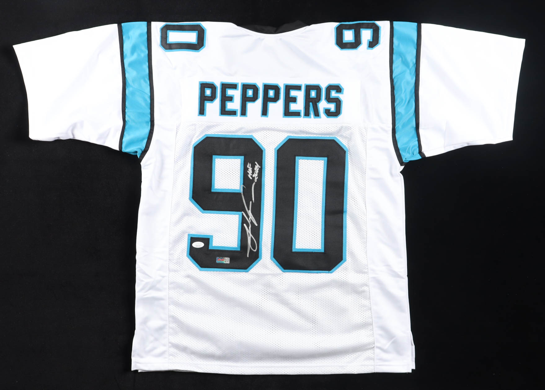 Custom jersey with everything sewn on, size XL. Hand-signed by Julius Peppers (Carolina Panthers, HOF).