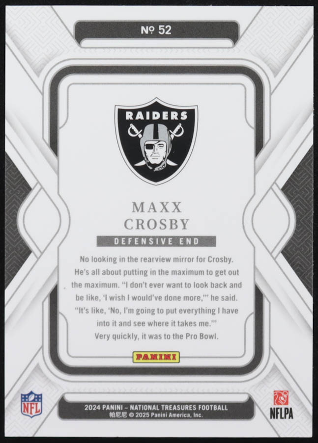 Maxx Crosby 2024 Panini National Treasures Holo Gold #52 #7/15