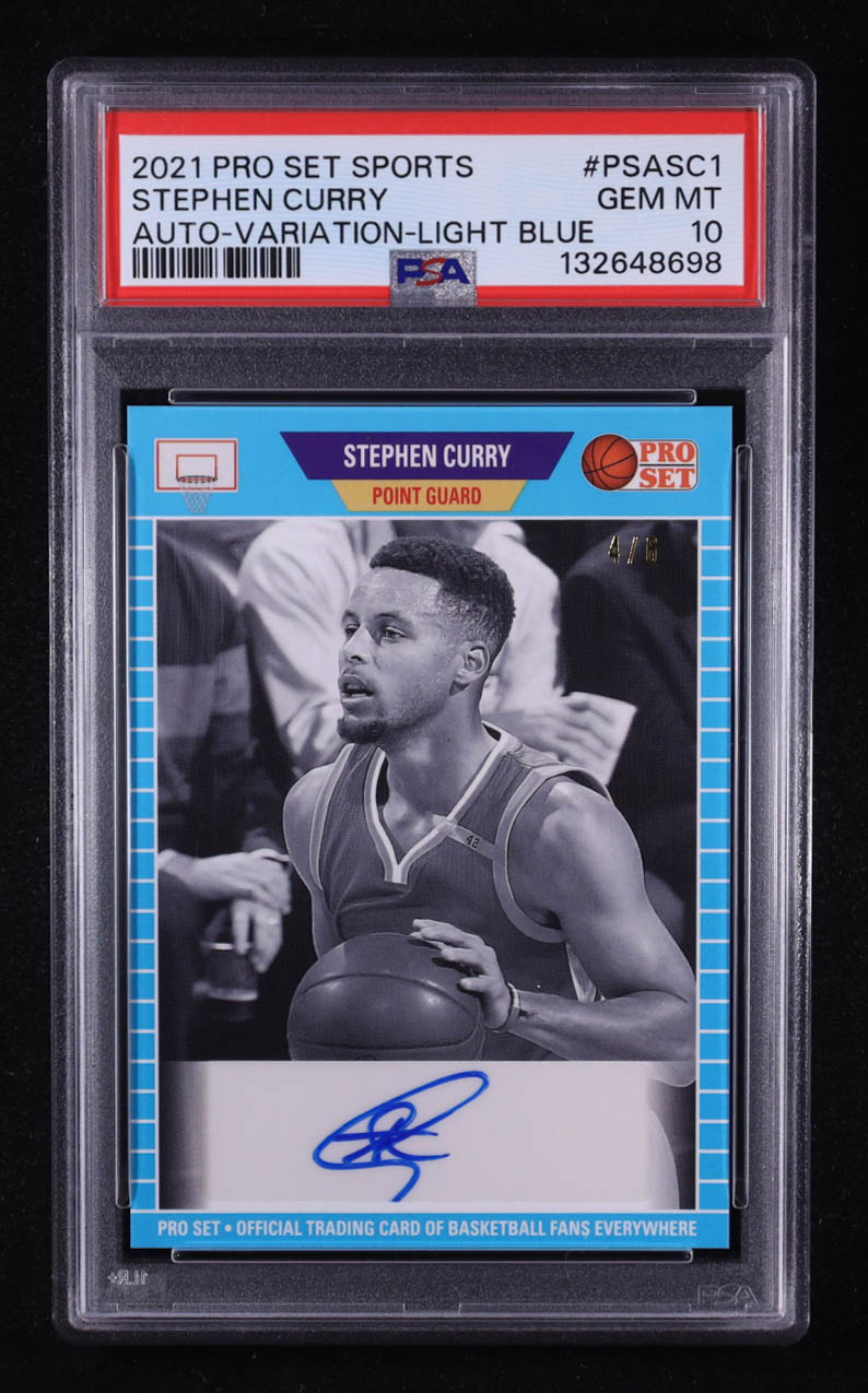 Stephen Curry 2021 Leaf Pro Set Sports Autographs Light Blue #PSASC1B #4/6 (PSA 10)