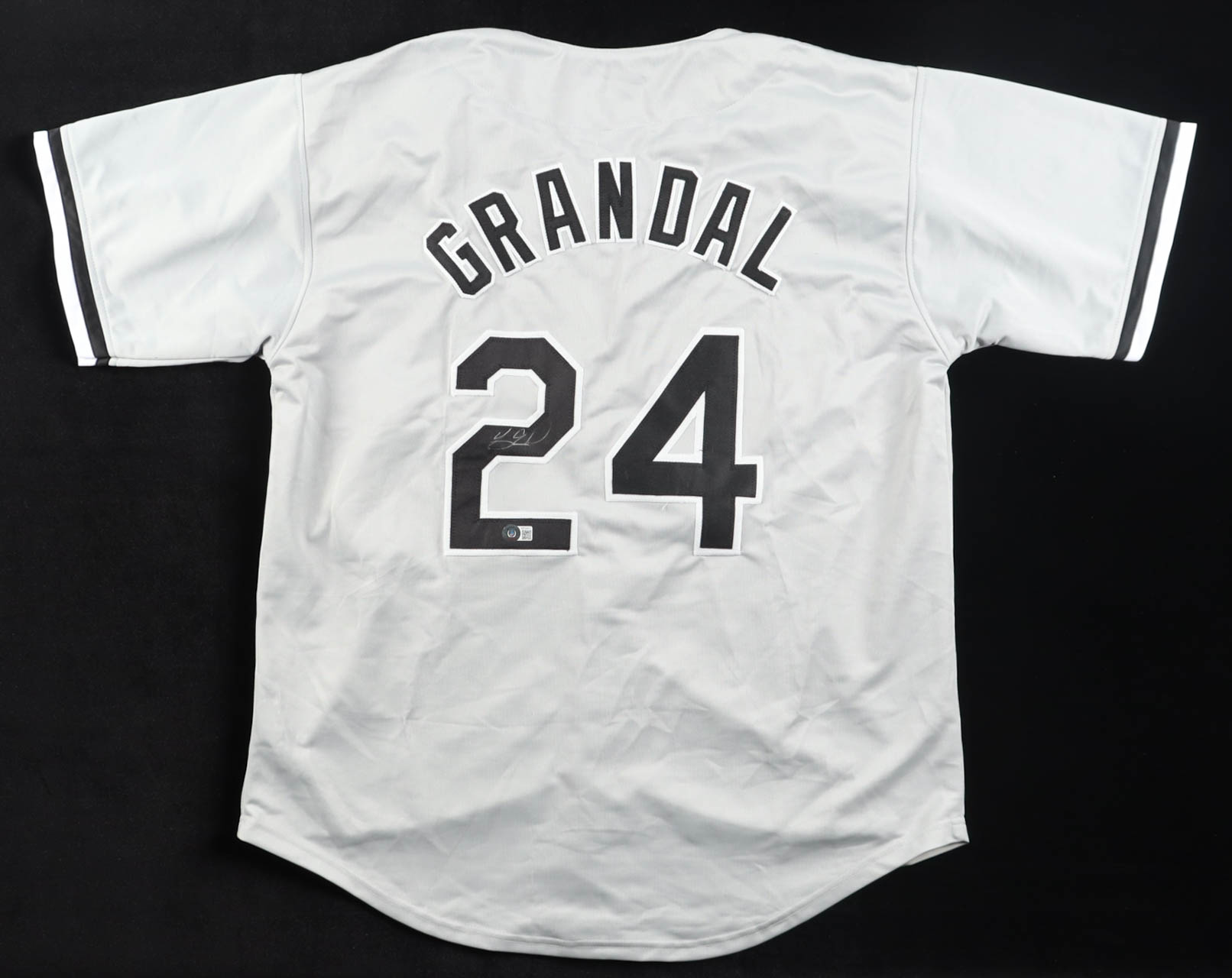 Custom jersey with everything sewn on, size XL. Hand-signed by Yasmani Grandal.