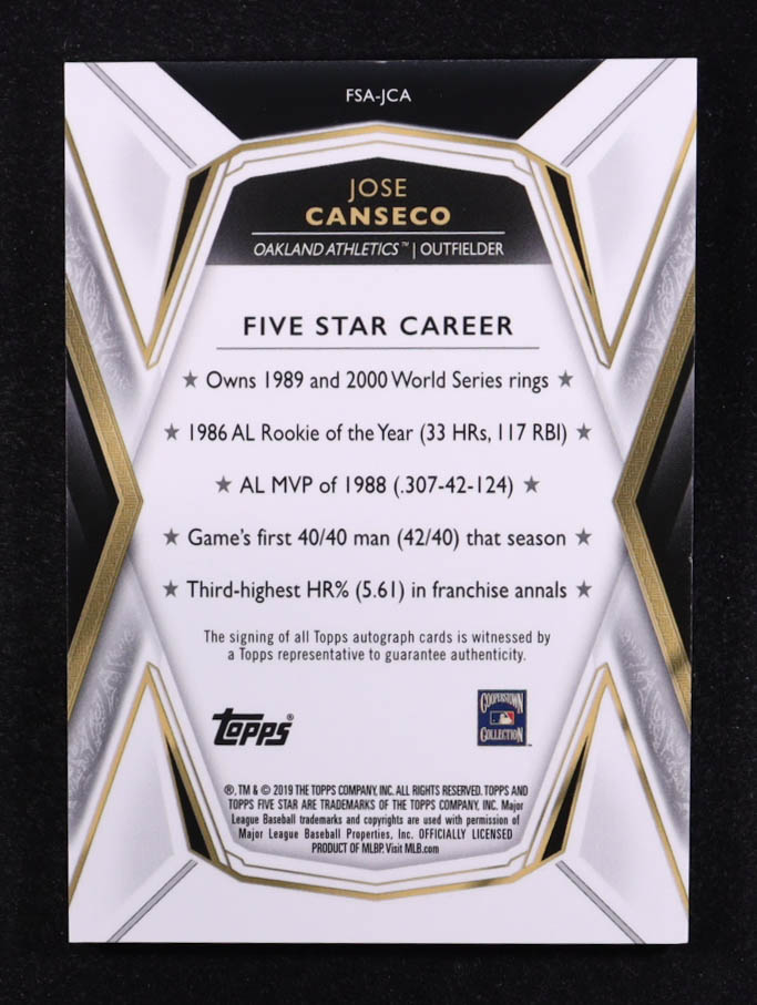 Jose Canseco 2019 Topps Five Star Autographs #FSAJCA