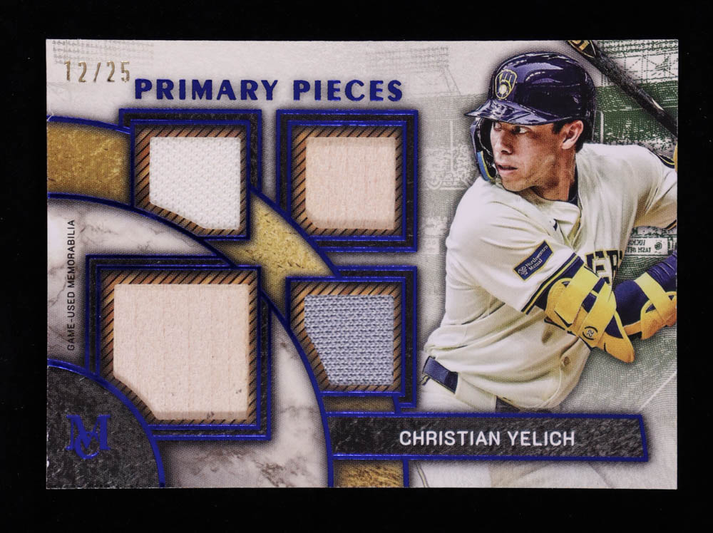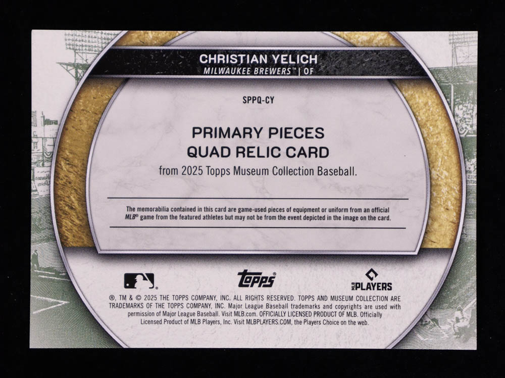 Christian Yelich 2025 Topps Museum Collection Primary Pieces Quad Relics Sapphire #SPPQCY #12/25