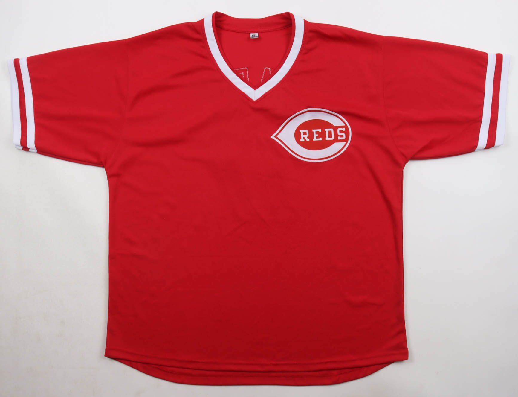 Custom jersey. Everything is sewn on, size XL. Hand signed and inscribed by Chris Sabo.