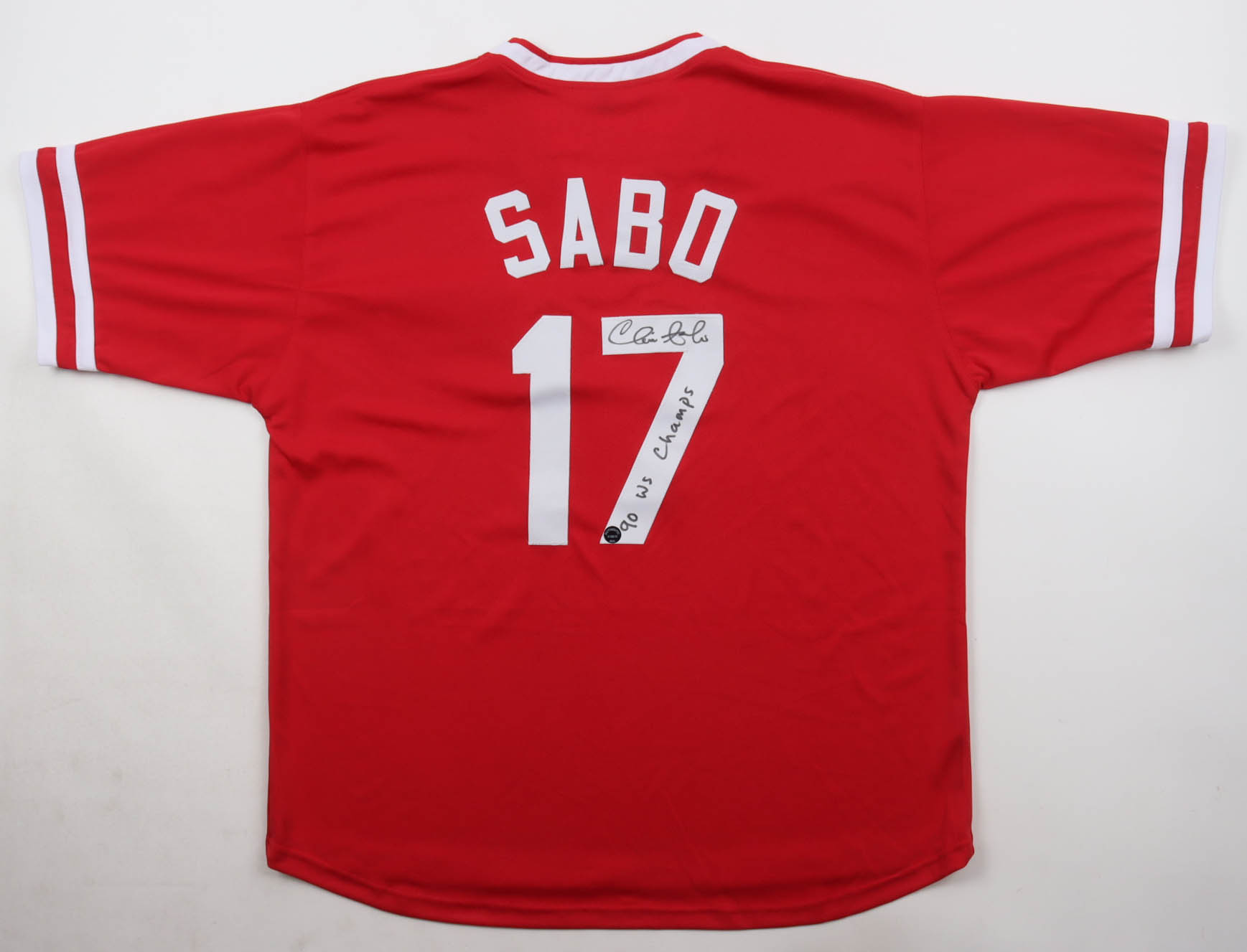 Chris Sabo Signed Jersey Inscribed "90 WS Champs" (Authentic Ink)