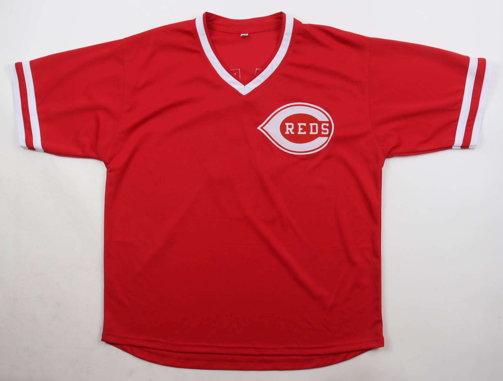 Custom jersey. Everything is sewn on, size XL. Hand signed and inscribed by Chris Sabo.