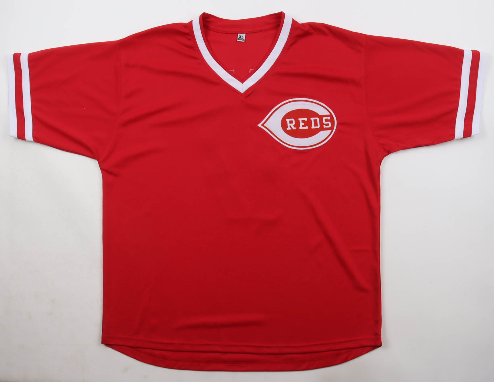 Custom jersey. Everything is sewn on, size XL. Hand signed and inscribed by Chris Sabo.