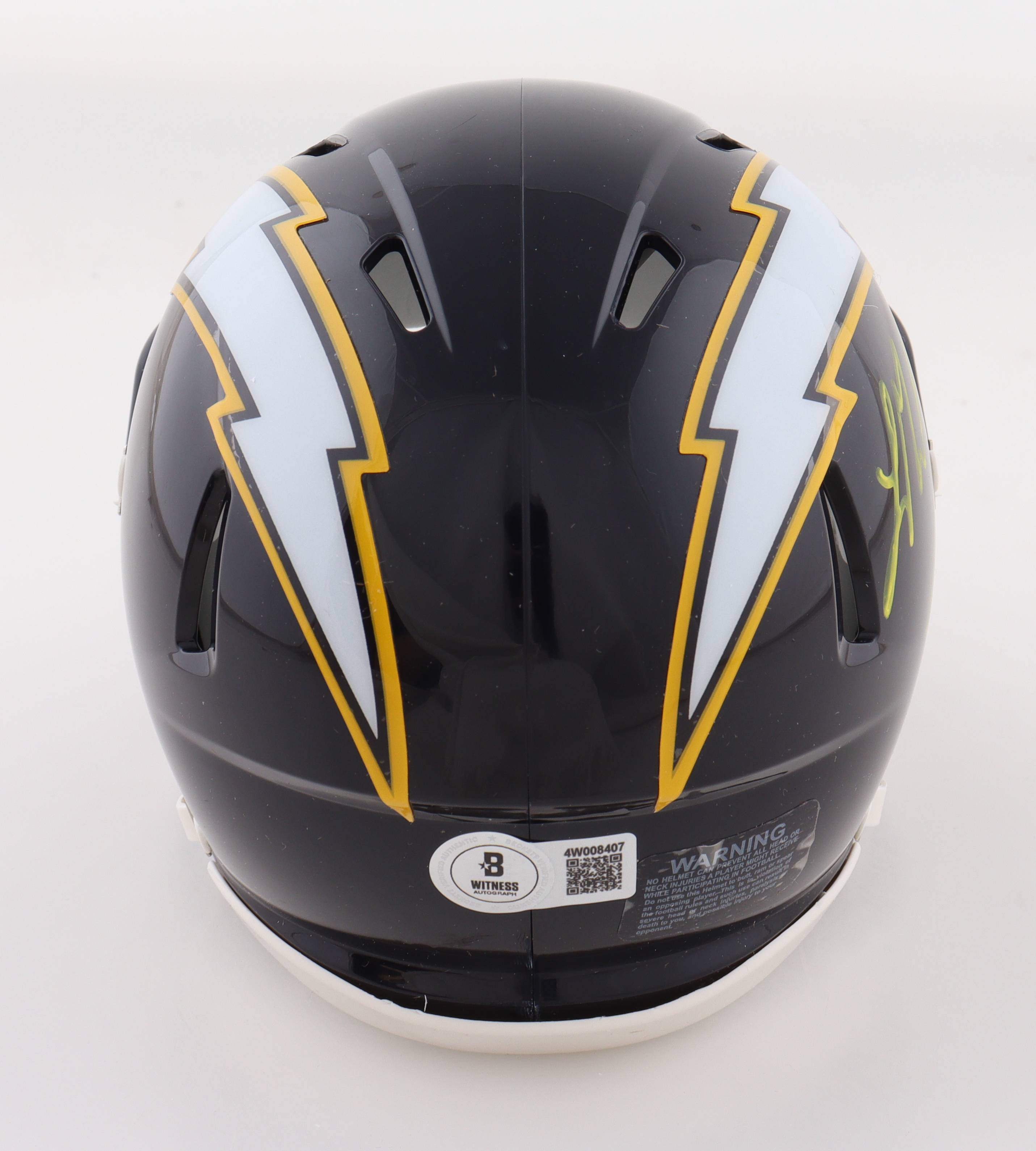 Riddell Los Angeles Chargers Speed Mini Helmet. Hand-signed by Ladd McConkey.