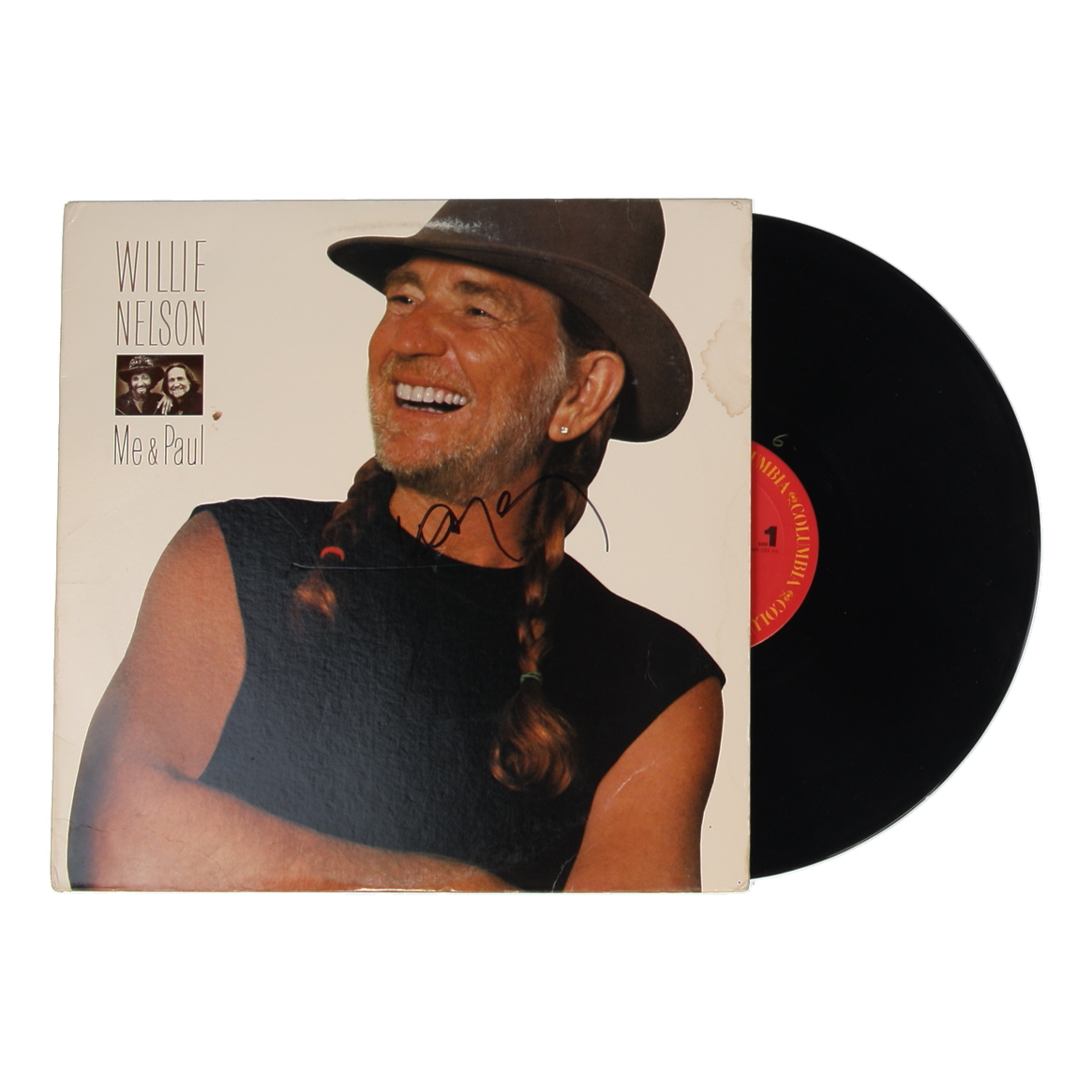 "Me & Paul" Vinyl Record Album has been hand-signed by Willie Nelson (HOF). Please note, the vinyl record is included and the album cover shows signs of wear.