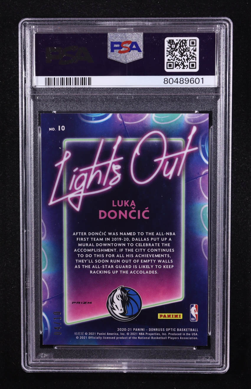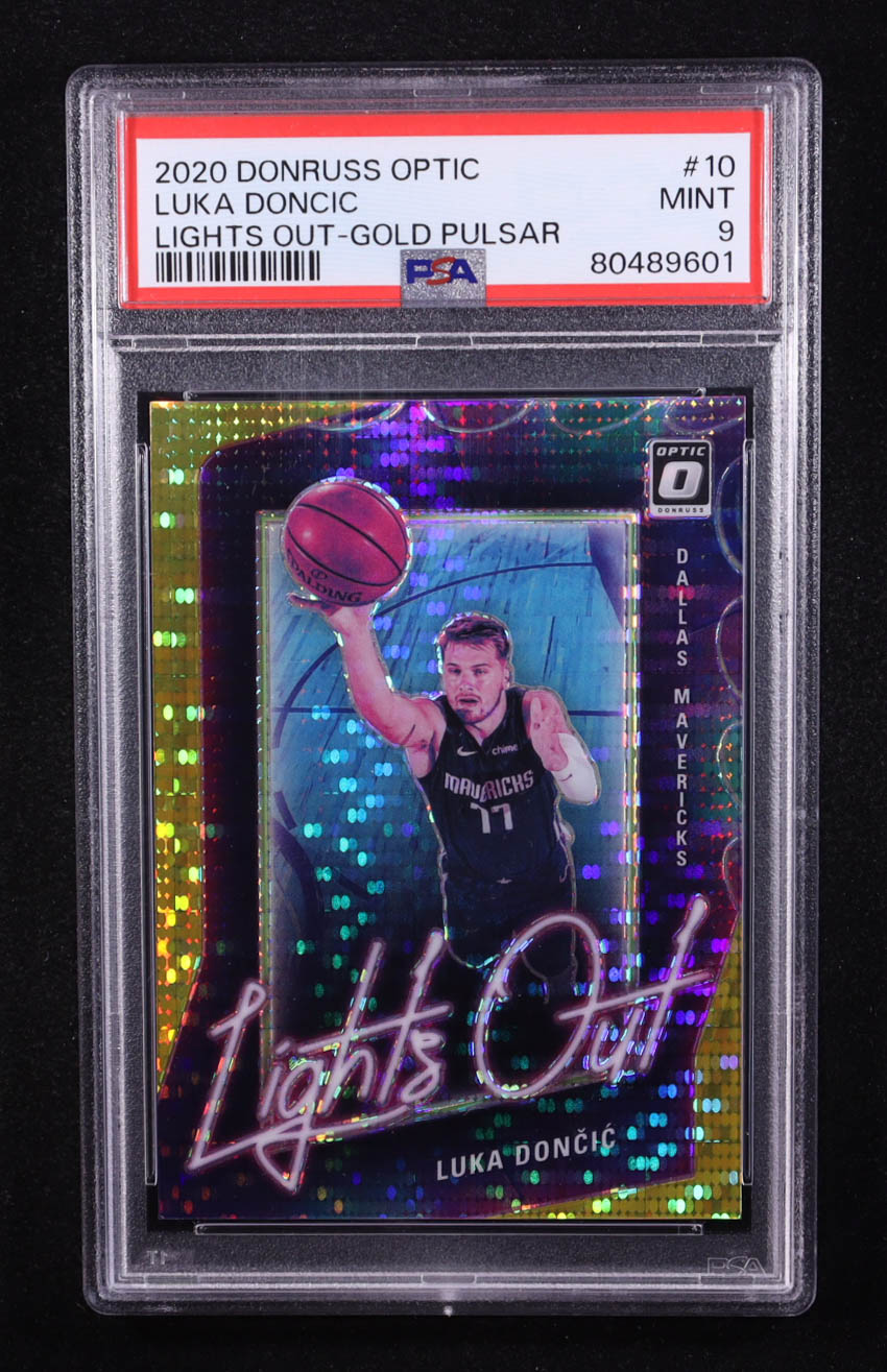 Luka Doncic 2020-21 Donruss Optic Lights Out Gold Pulsar #10 #04/10 (PSA 9)
