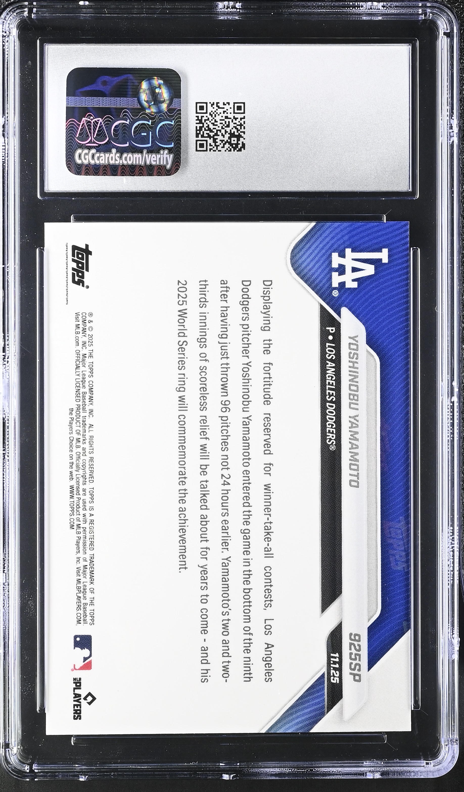 Yoshinobu Yamamoto 2025 Topps Now Short Prints #925SP (CGC 9)