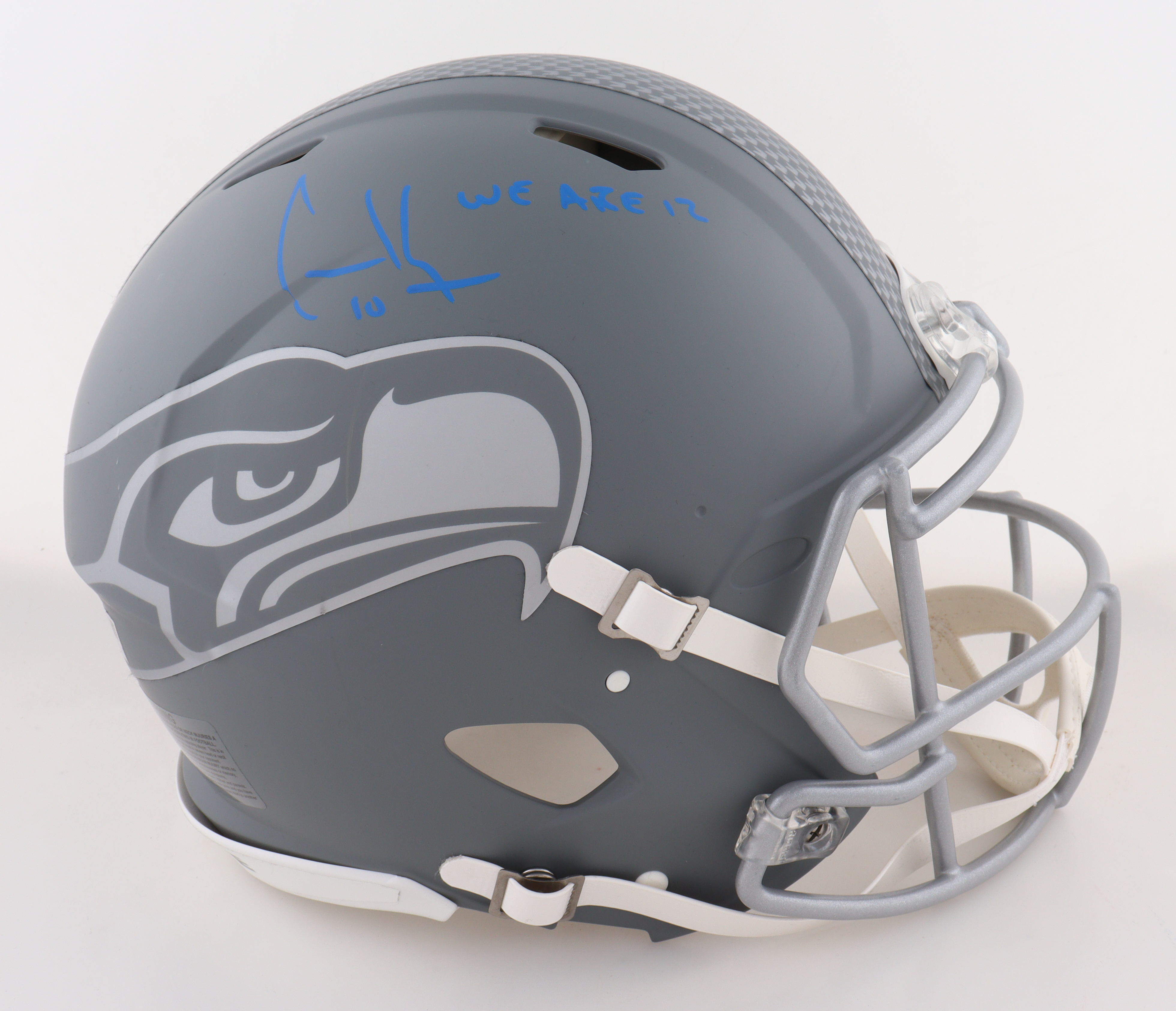 Cooper Kupp Signed Seahawks Full-Size Authentic On-Field Slate Alternate Speed Helmet Inscribed "We Are 12" (Fanatics)