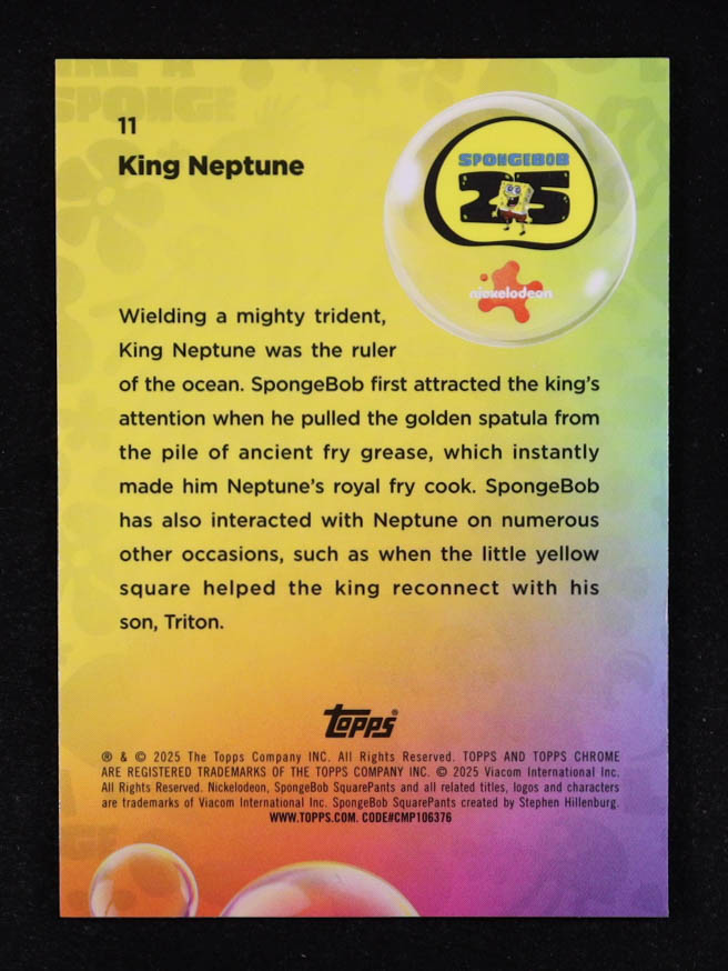 King Neptune 2025 Topps Chrome SpongeBob Squarepants Blue Refractors #11 #028/150