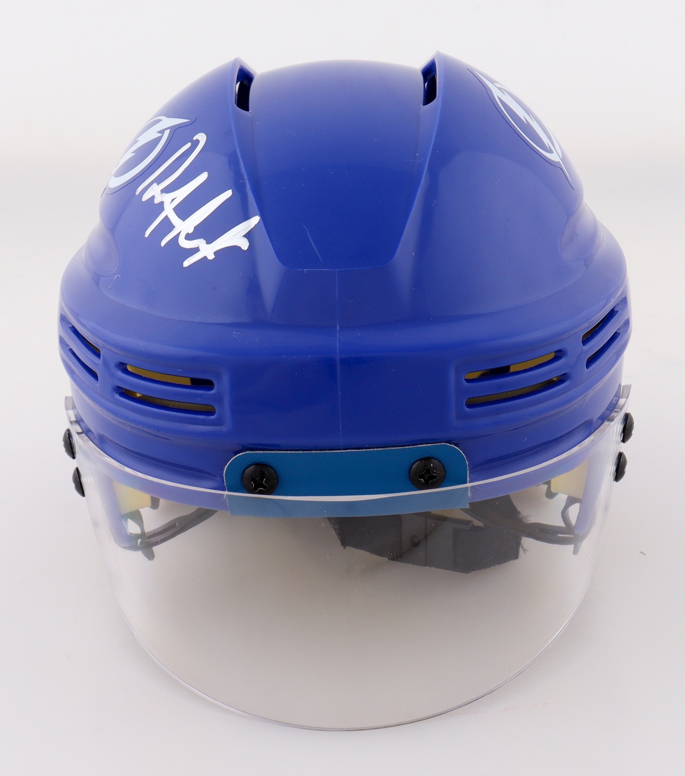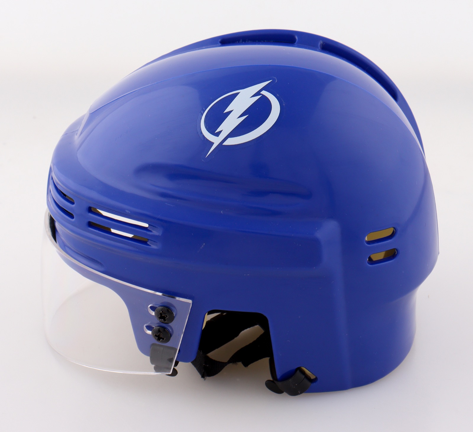 Tampa Bay Lightning mini helmet has been hand-signed by Dave Andreychuk (HOF).