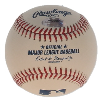 Rawlings Official Major League baseball. Hand-signed and inscribed by Tommy Helms. Please note, the baseball is naturally toned.