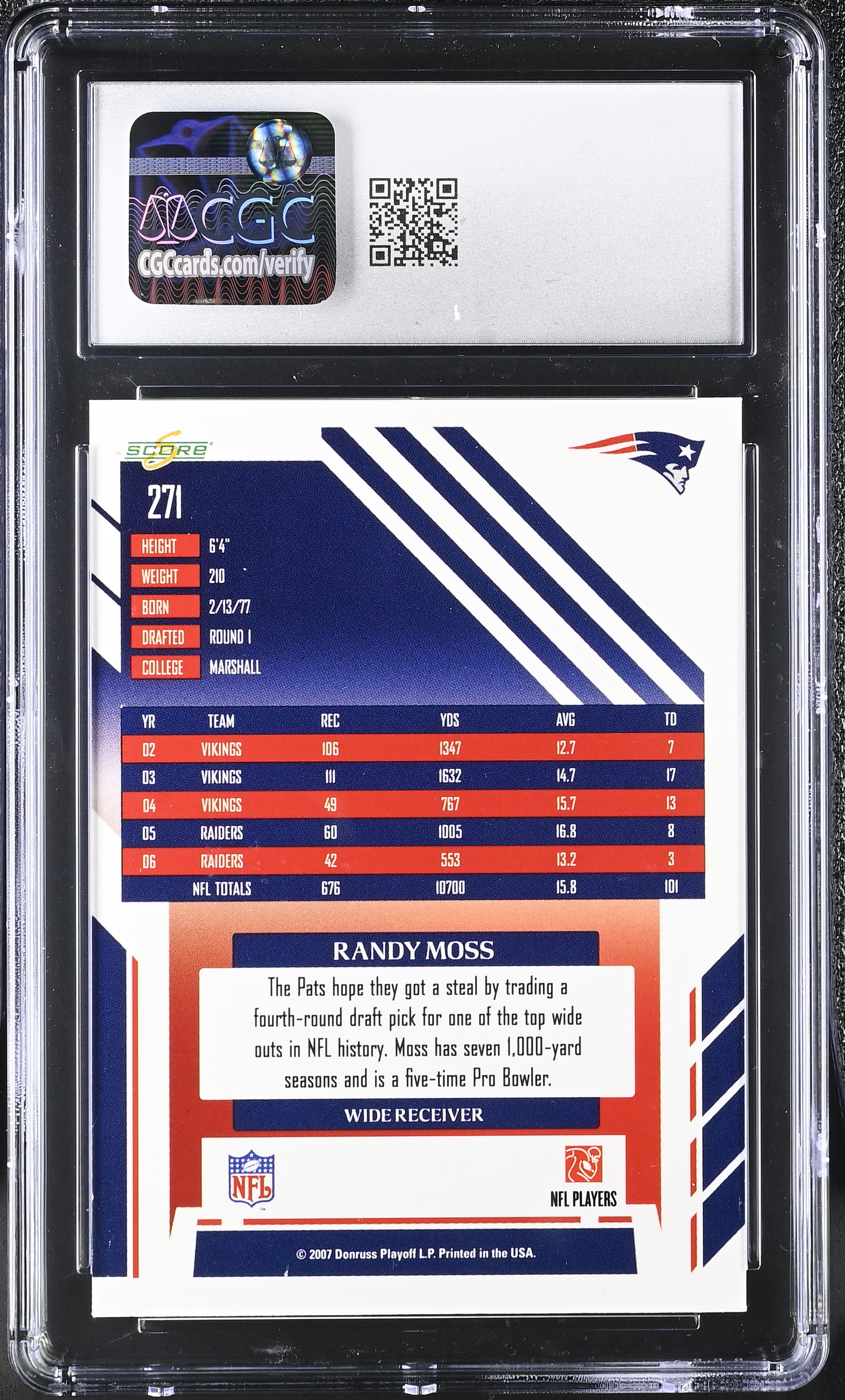 Randy Moss 2007 Score Atomic #271 (CGC 7.5)