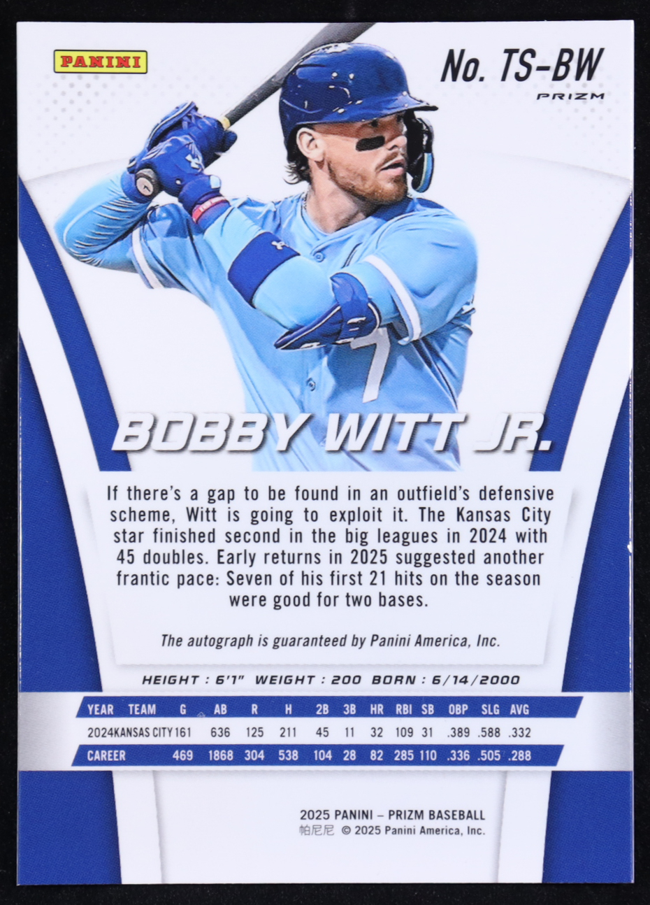 Bobby Witt Jr. 2025 Panini Prizm Throwback Signatures #10