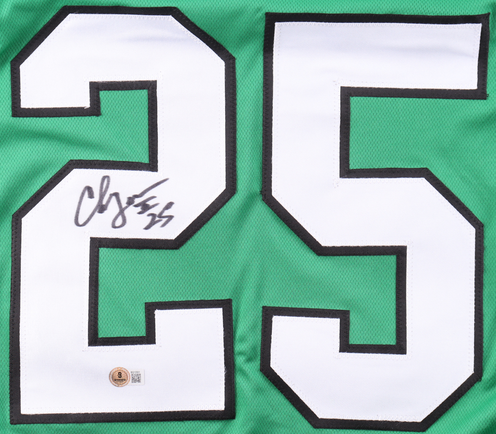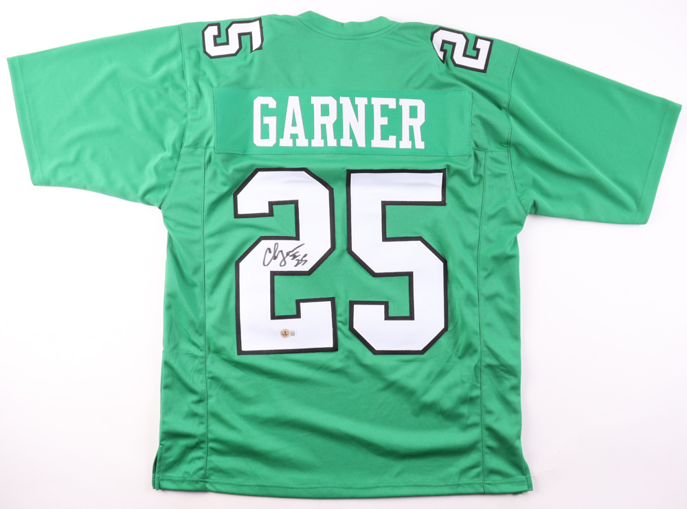 Custom jersey with everything sewn on, size XL. Hand-signed by Charlie Garner.