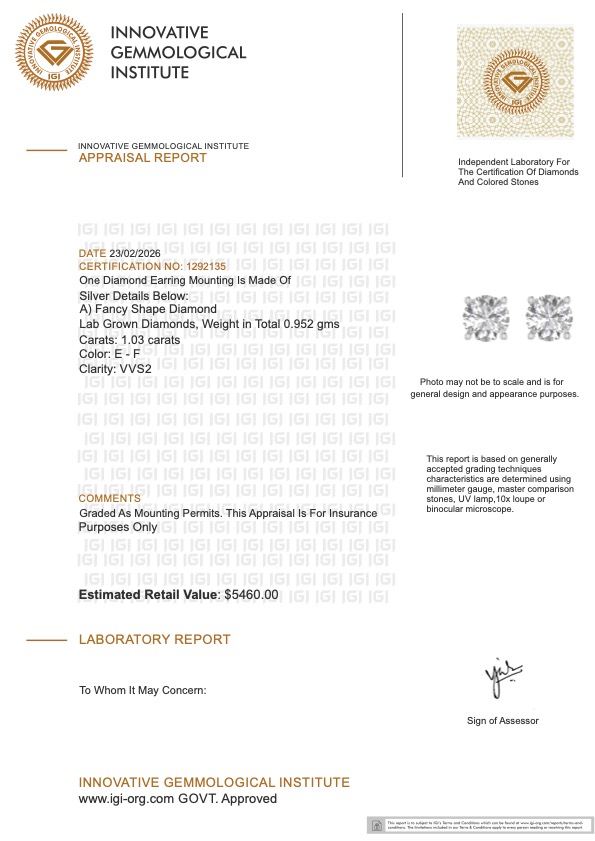 NEW 1.03 CTW Lab Grown Diamonds Earrings E-F, VVS2 | Estimated Retail Value: $5,460 (IGI)
