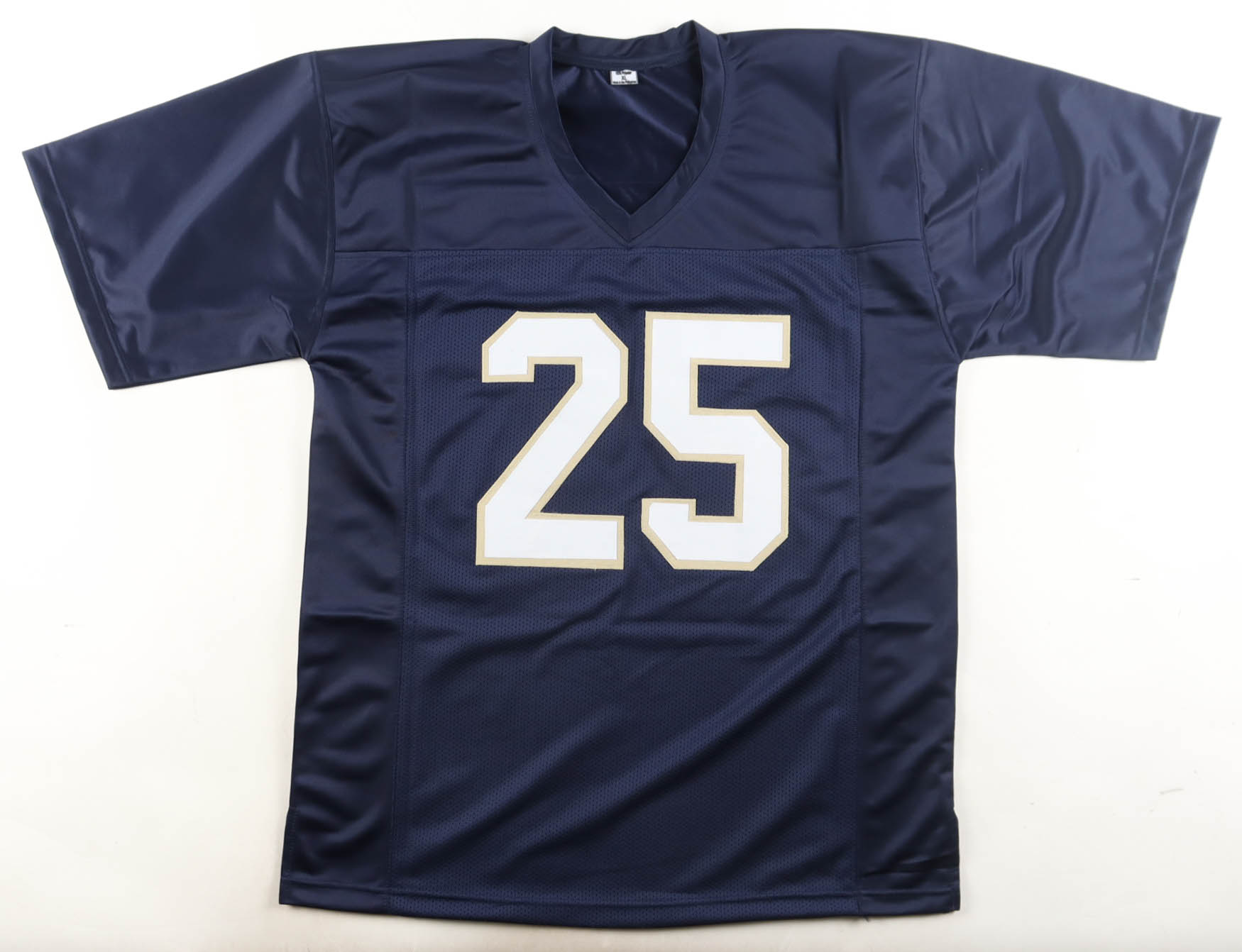 Custom jersey with everything sewn on, size XL. Hand-signed by Raghib "Rocket" Ismail. Please note, the signature ink has bled.