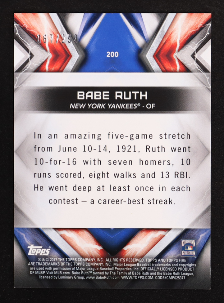 Babe Ruth 2017 Topps Fire Orange #200 #057/299