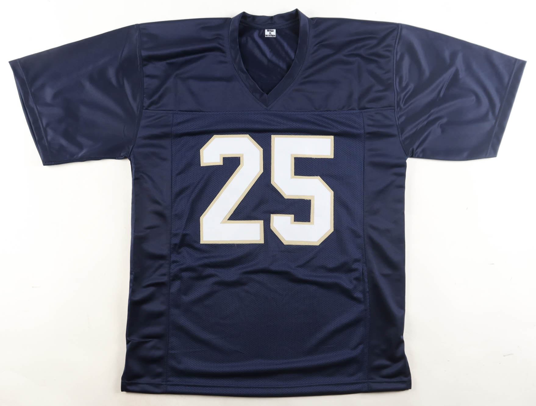 Custom jersey with everything sewn on, size XL. Hand-signed by Raghib "Rocket" Ismail. Please note, the signature ink has bled.