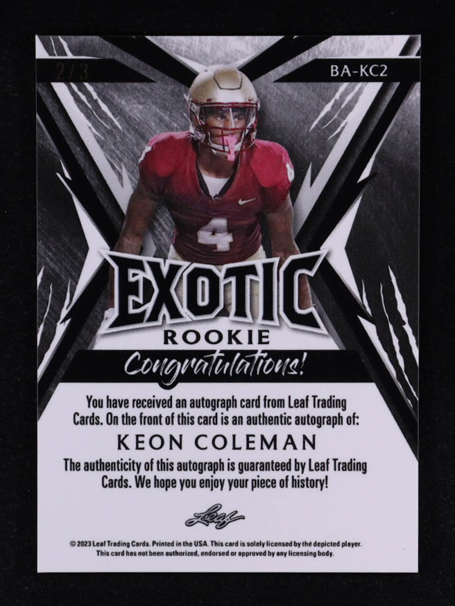 Keon Coleman 2024 Leaf Exotic Autographs Elephant Kaleidoscope #BAKC2 #2/3 RC
