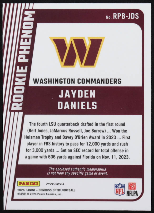 Jayden Daniels 2024 Donruss Optic Rookie Phenoms Blue Hyper #17 RC