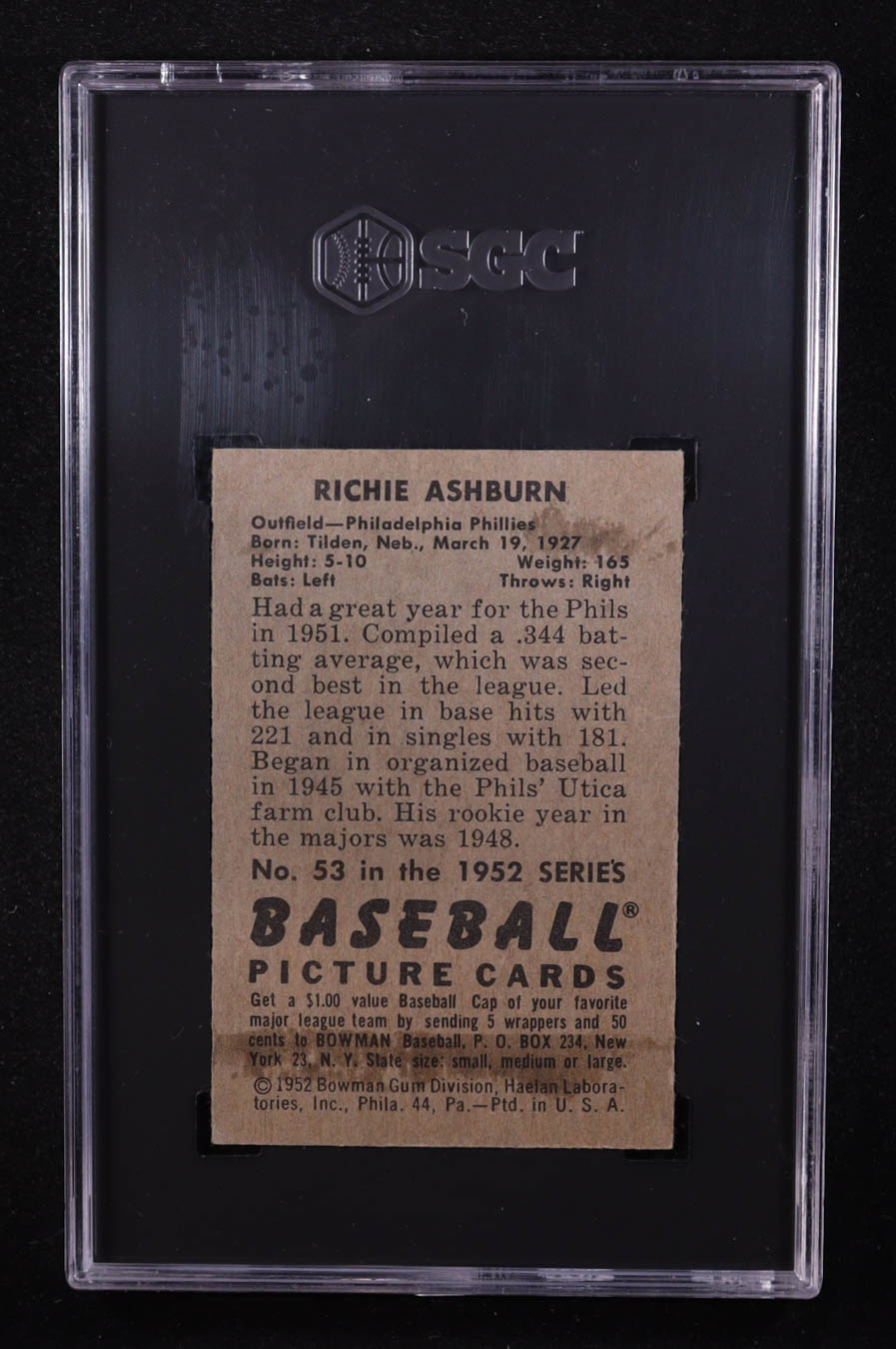 Richie Ashburn 1952 Bowman #53 (SGC 4.5)