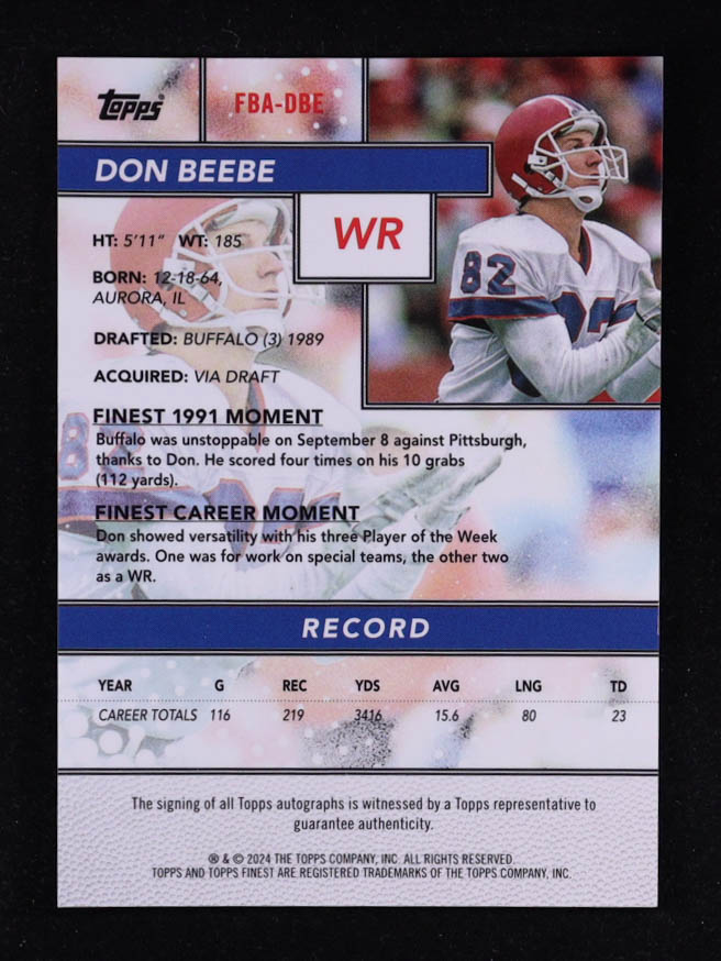 Don Beebe 2024 Finest Flashback Autographs Gold Geometric Refractors #FBADBE #36/50