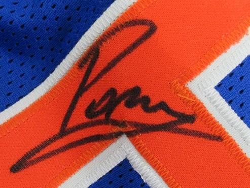Custom jersey with everything sewn on, size XL. Hand-signed by Kristaps Porzingis.