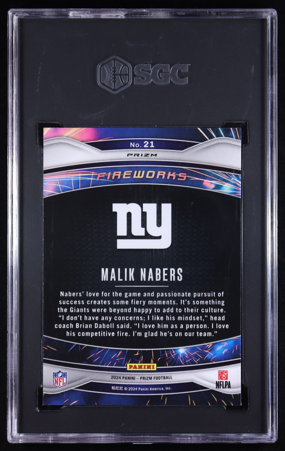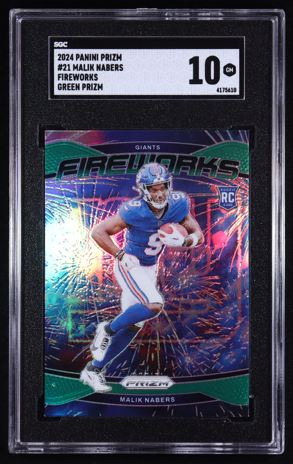 Malik Nabers 2024 Panini Prizm Fireworks Prizms Green #21 RC (SGC 10)