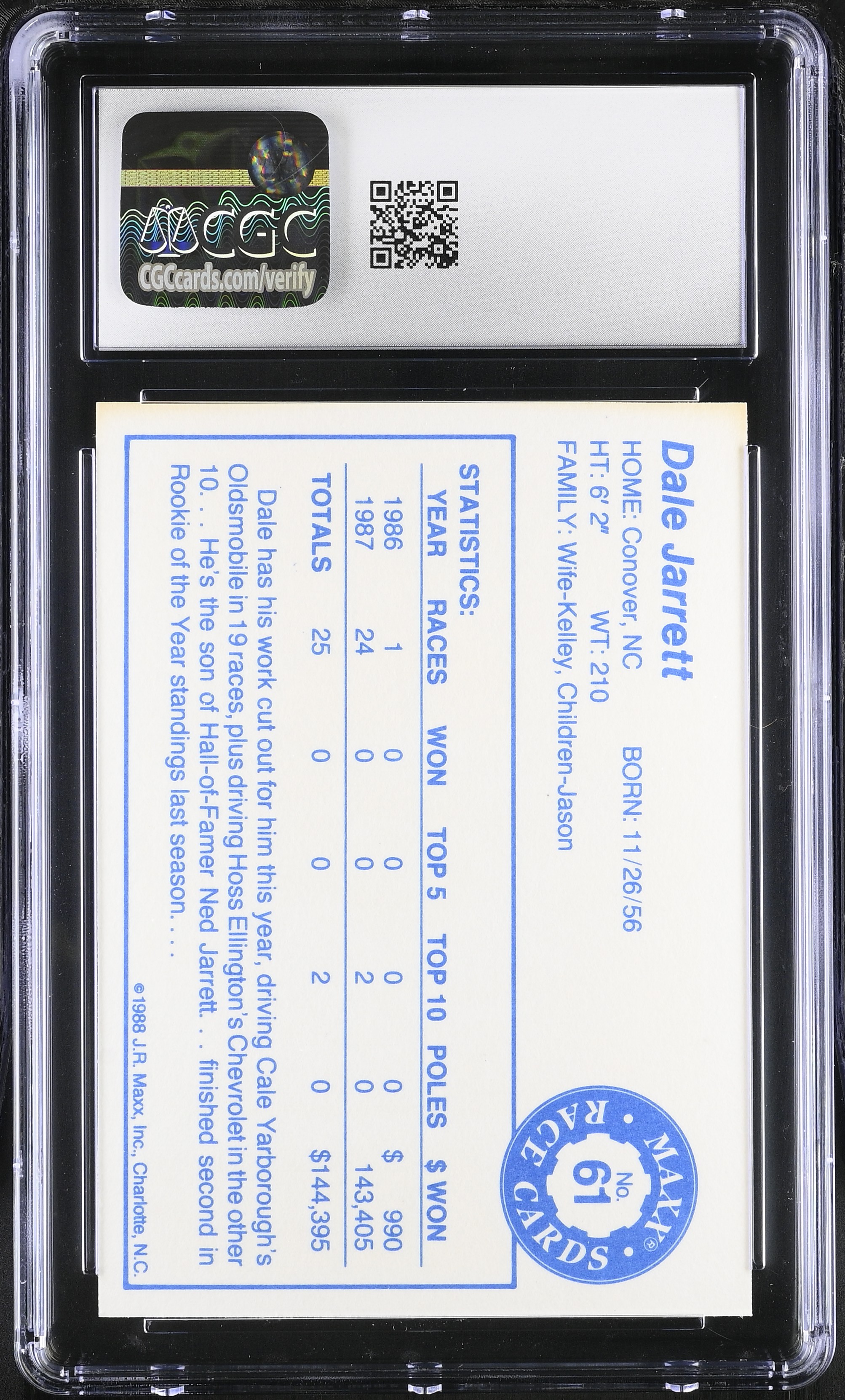 Dale Jarrett 1988 Maxx Charlotte #61 RC (CGC 8)