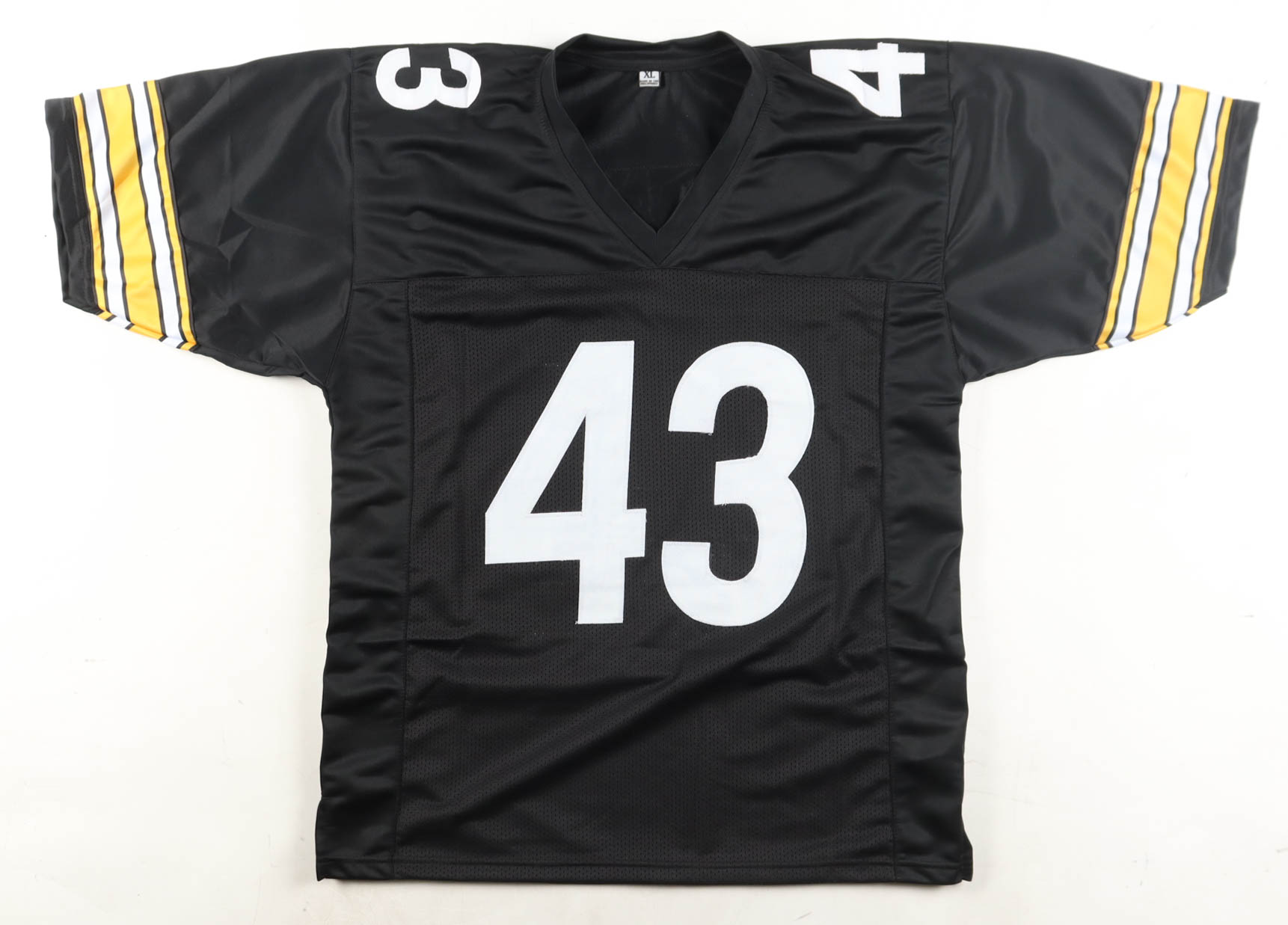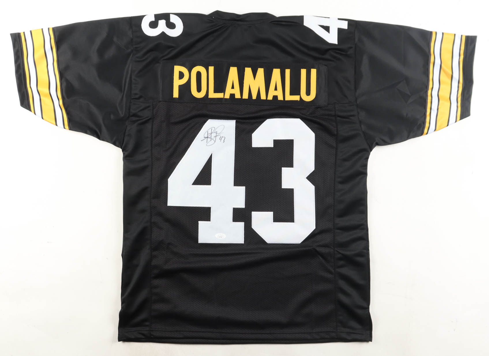 Custom jersey. Everything is sewn on, size XL. Hand-signed by Troy Polamalu (HOF). Please note, glue is visible through the jersey numbers.