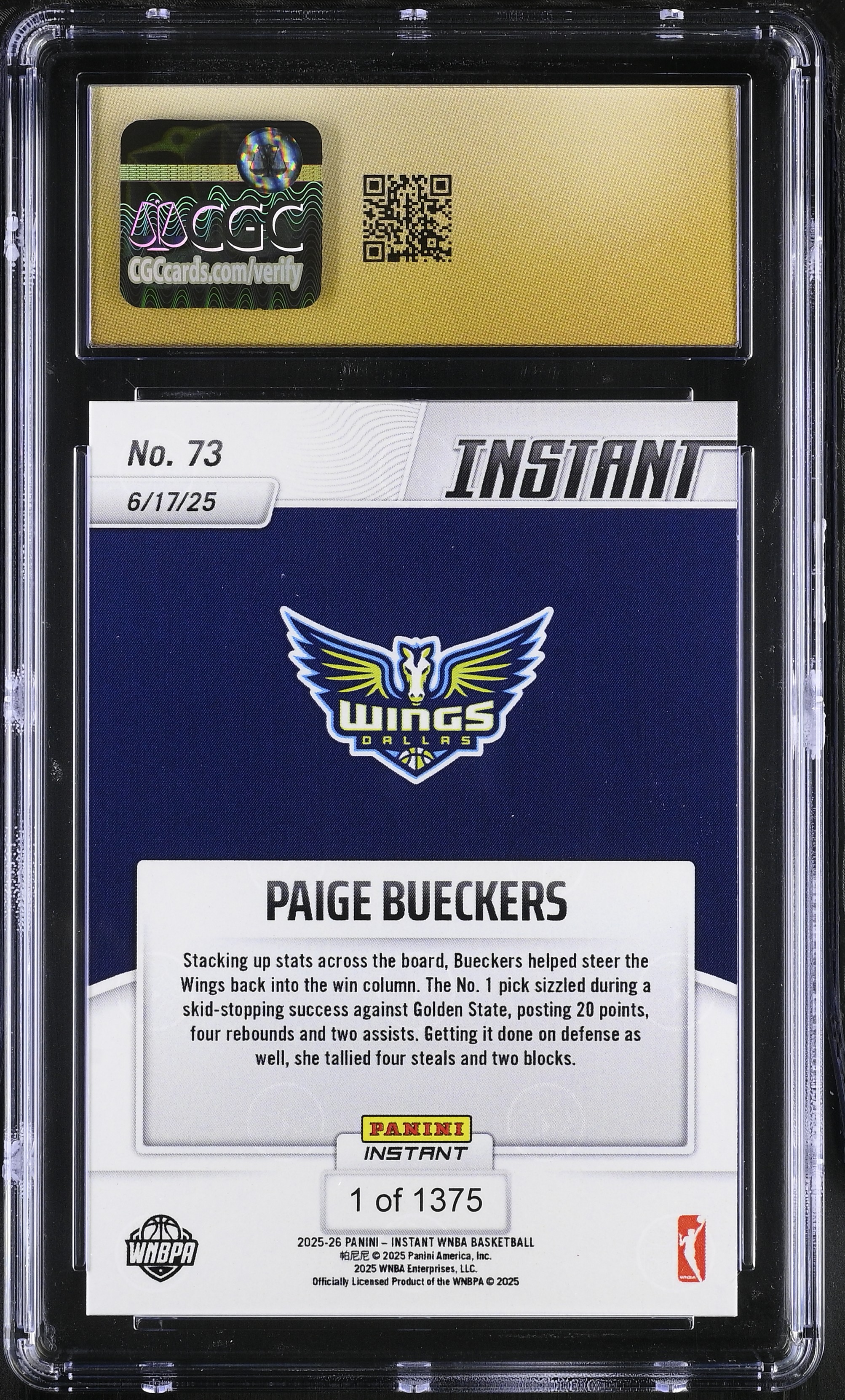 Paige Bueckers 2025-26 Panini Instant WNBA #73 RC (CGC Pristine 10 | Black Label)