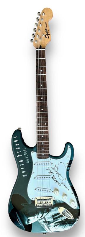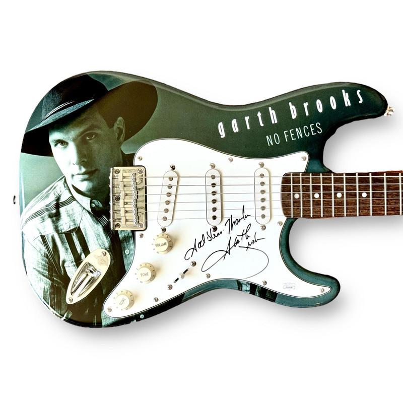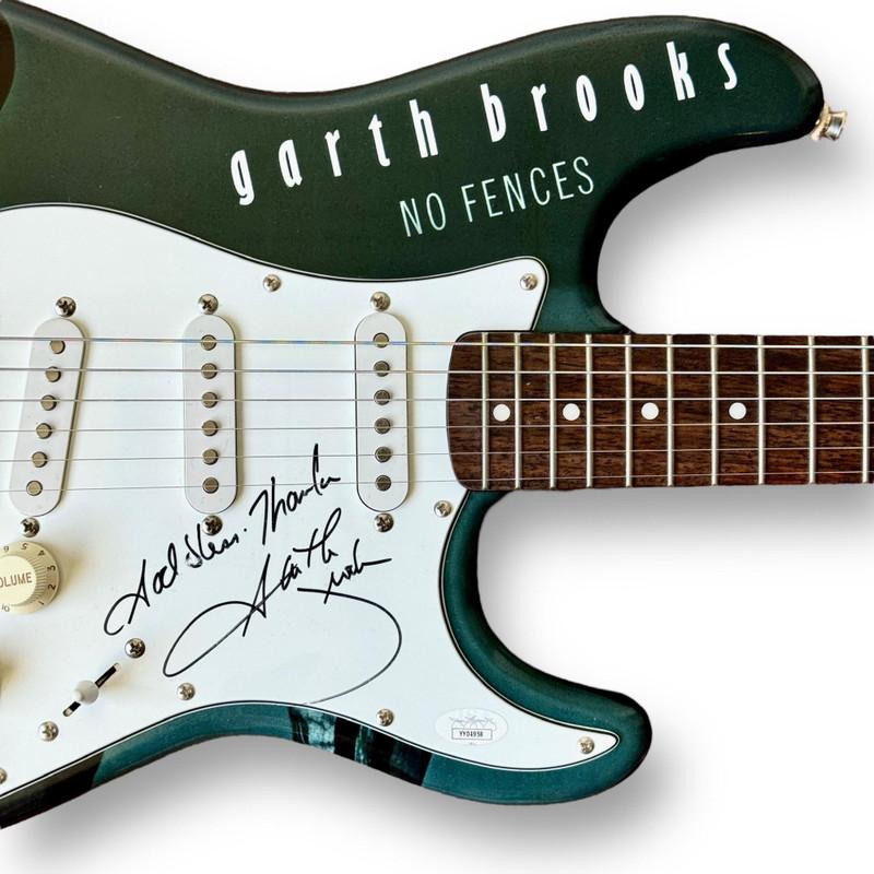 Custom Autograph Edition stratocaster electric guitar measures approximately 39" in length and has been hand-signed and inscribed on the pickguard by Garth Brooks.