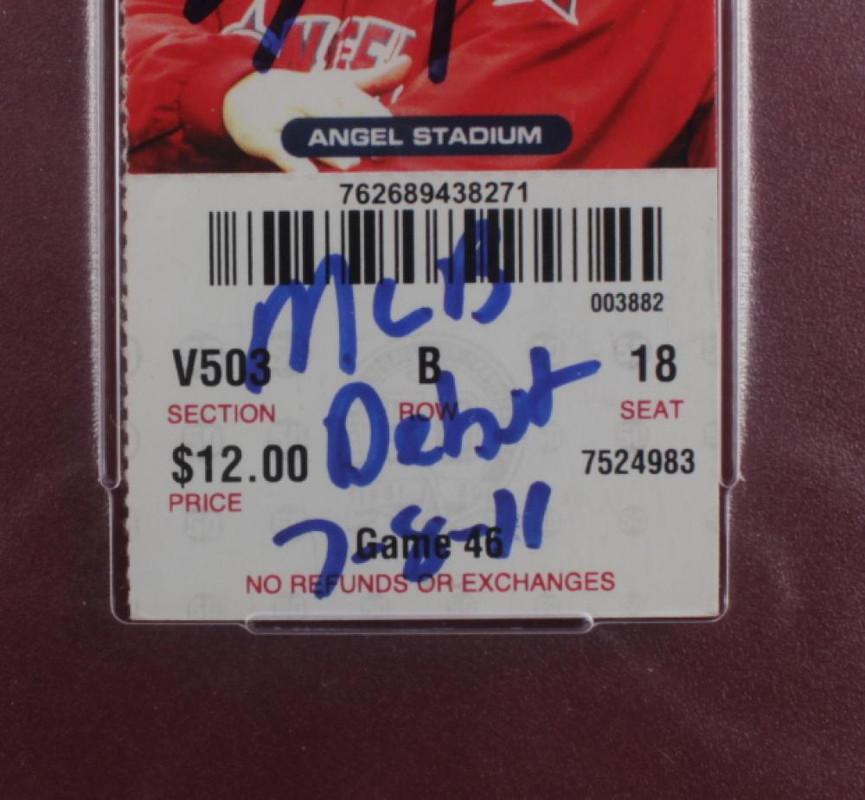 Mike Trout Signed Angels Custom Framed MLB Debut Ticket Display Inscribed "MLB Debut 7-8-11" (PSA)