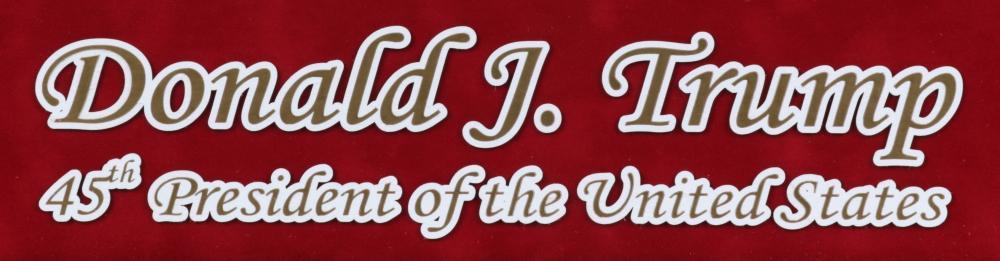 Custom framed display measures approximately 23.5" x 28.5" in size and has been hand signed by Donald Trump.