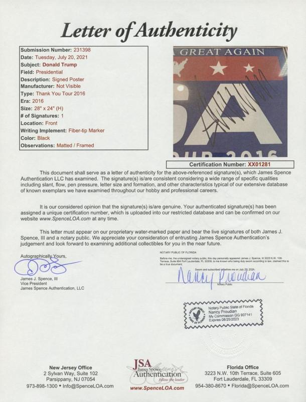 Donald Trump Signed Official 2016 "Make America Great Again" Custom Framed Campaign Poster Display (JSA)