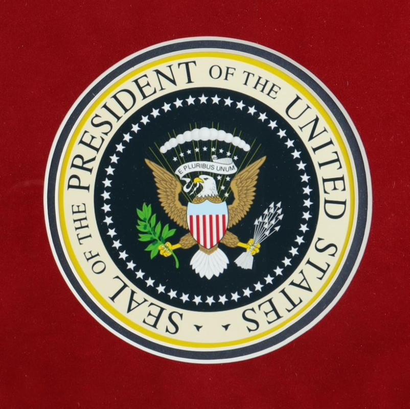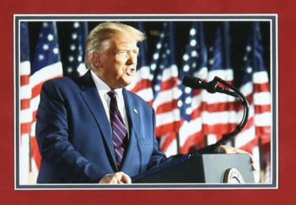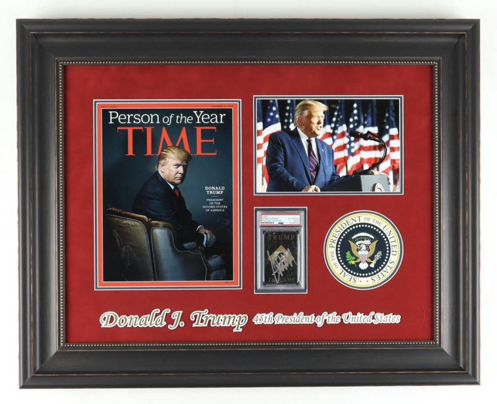 Custom framed display measures approximately 24" x 30.5" in size and features a card hand-signed by Donald Trump.