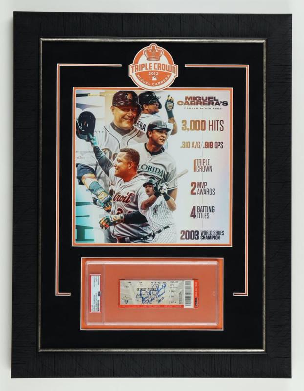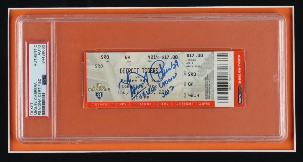 Miguel Cabrera Signed Tigers Custom Framed 2012 Opening Day Ticket Display Inscribed "Triple Crown 2012" (PSA)